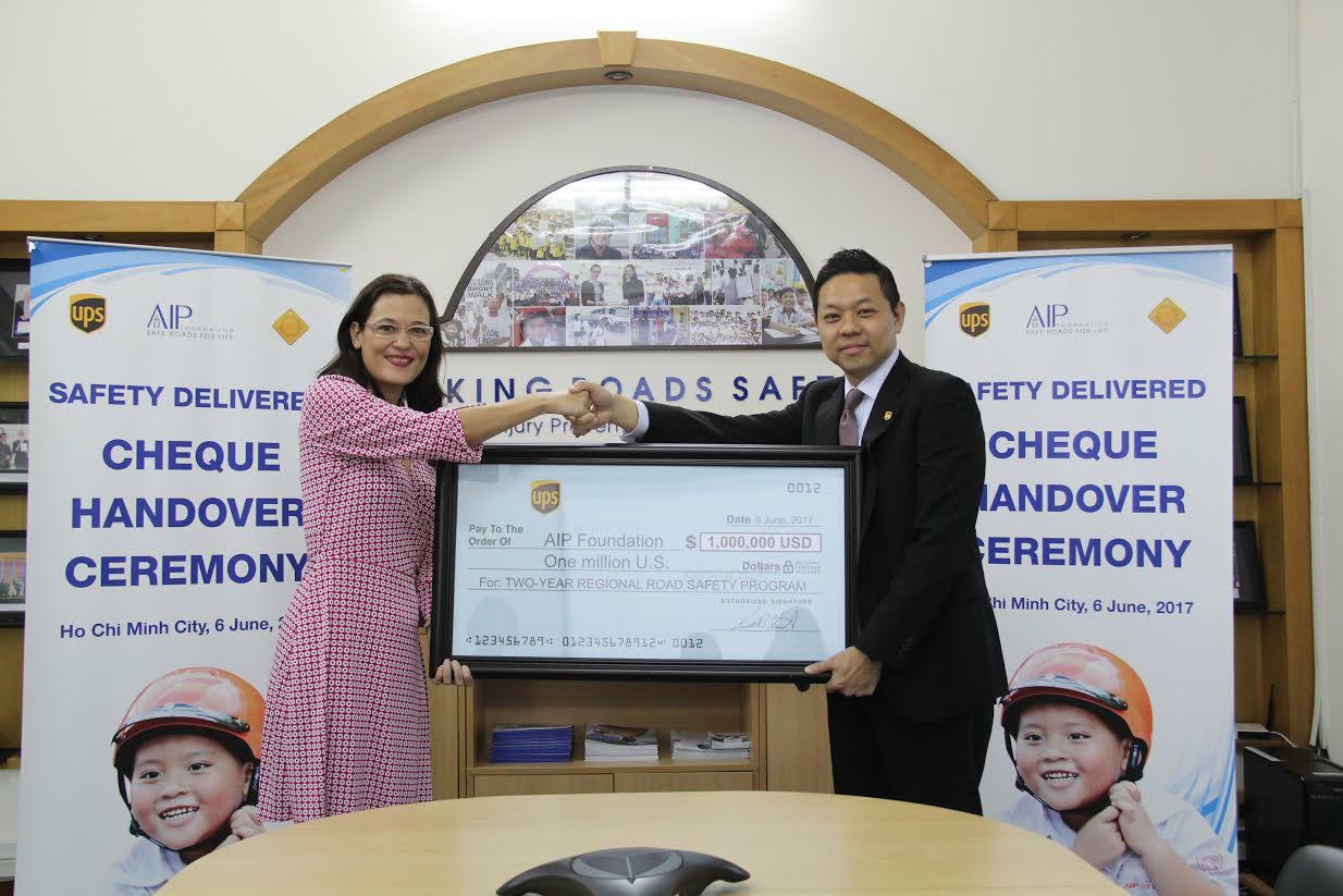 Vừa qua, tại Thành phố Hồ Chí Minh, Quỹ UPS đã trao khoản tài trợ 1 triệu USD cho Quỹ AIP để triển khai dự án an toàn giao thông đường bộ “Hành trang an toàn” tại 4 quốc gia gồm Việt Nam, Thái Lan, Campuchia và Myanmar trong 2 năm 2017 và 2018.