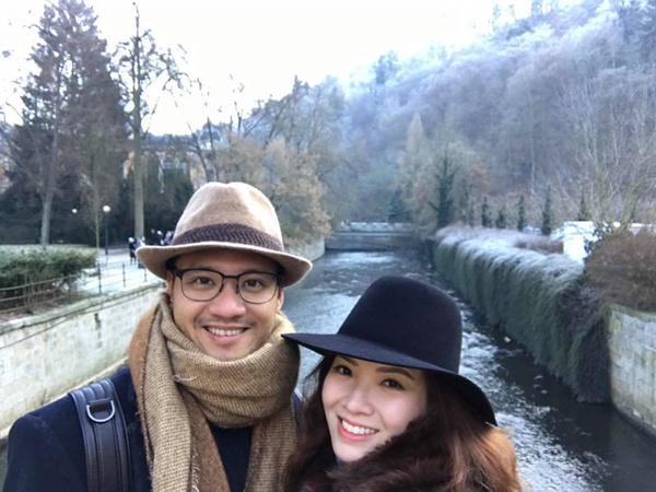 Vợ chồng Khải Anh - Đan Lê đang có chuyến du lịch ngọt ngào đến Czech, nữ MC viết: "Cảm ơn số phận vì dù có bao ngã rẽ vẫn đưa ta đến bên nhau". |
