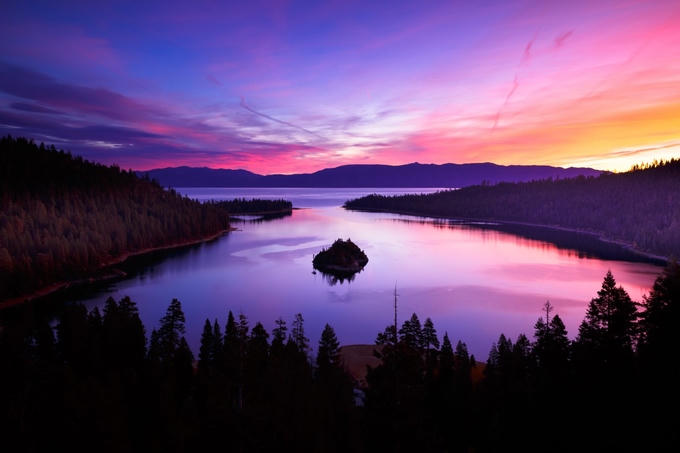 Hồ Tahoe nổi tiếng là một trong những hồ trên núi cao nhất thế giới. Các nhiếp ảnh gia khuyên mọi người nên đến vịnh Emerald ngắm mặt trời mọc, đảm bảo sẽ có trải nghiệm đặc biệt.