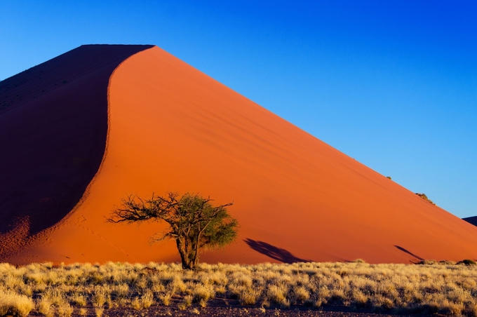 Sa mạc Namib có nhiều cồn cát cao và đẹp nhất thế giới. Những cồn cát có màu cam tỏa sáng trong ánh mặt trời cùng vài cây khô cằn do thiếu nước, tạo nên vẻ đẹp hoàn mỹ cho những nhiếp ảnh gia yêu phiêu lưu.