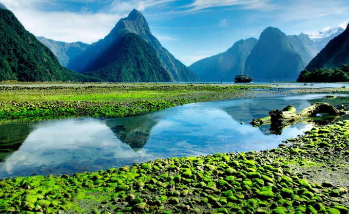 Những người từng thám hiểm Milford Sound đều cho rằng vịnh hẹp này là “kỳ quan thiên nhiên thứ tám trên thế giới”. Các dãy núi nằm bên vùng biển hoang sơ, nơi sinh trưởng của hải cẩu, chim cánh cụt, cá heo và cá voi lưng gù. Trong ảnh là đỉnh Mitre, một trong những điểm được chụp ảnh nhiều nhất tại đây.