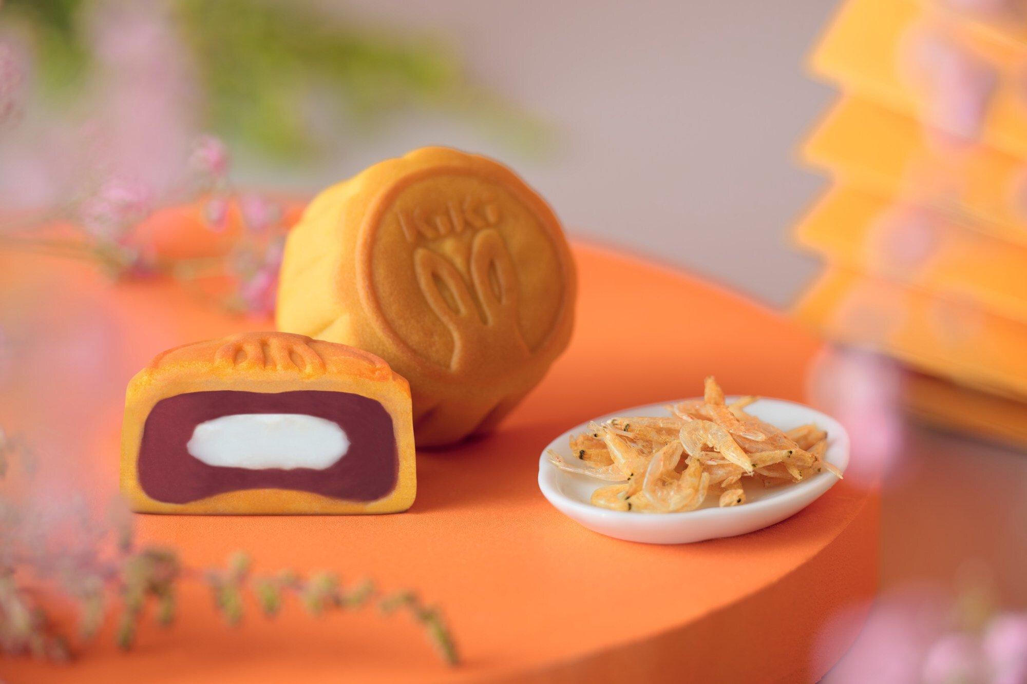 Bánh trung thu được làm theo công thức ít đường, mochi khoai môn với nhân tôm sakura khô. Ảnh: Kiki Noodle Bar |