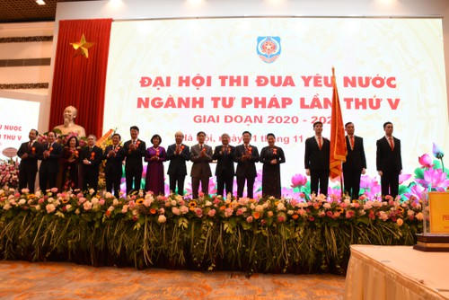 Trong không khí sôi nổi thi đua, tự hào về truyền thống 75 năm xây dựng và trưởng thành của ngành Tư pháp, ngày 01/11/2020, tại Thủ đô Hà Nội, Bộ Tư pháp long trọng tổ chức Đại hội thi đua yêu nước ngành Tư pháp lần thứ V. Với chủ đề “Toàn ngành Tư pháp đoàn kết, kỷ cương, sáng tạo, tích cực thi đua hoàn thành xuất sắc nhiệm vụ chính trị được giao”, Đại hội không chỉ là dịp để Bộ, ngành Tư pháp đánh giá kết quả thực hiện các phong trào thi đua yêu nước giai đoạn 2015 – 2020, tuyên dương thành tích của tập thể, cá nhân điển hình tiên tiến, xác định phương hướng tiếp tục đổi mới, đẩy mạnh phong trào thi đua yêu nước của ngành Tư pháp giai đoạn 2021 – 2025; mà còn vinh dự, tự hào đón nhận “Huân chương Lao động” hạng Nhất (lần thứ hai) - là sự ghi nhận những cống hiến, đóng góp to lớn của ngành Tư pháp cho sự nghiệp cách mạng của Đảng và dân tộc - do đồng chí Nguyễn Thị Kim Ngân, Ủy viên Bộ Chính trị, Chủ tịch Quốc hội nước Cộng hòa xã hội chủ nghĩa Việt Nam thay mặt Lãnh đạo Đảng, Nhà nước trao tặng.