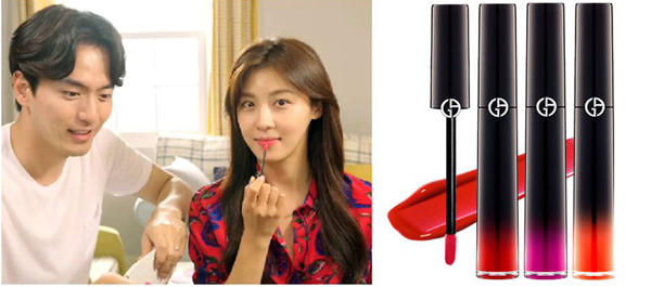 Ha Ji Won thường xuyên sử dụng thỏi son bóng Giorgio Armani Ecstasy Lacquer trong phim The Time We Were Not in Love.