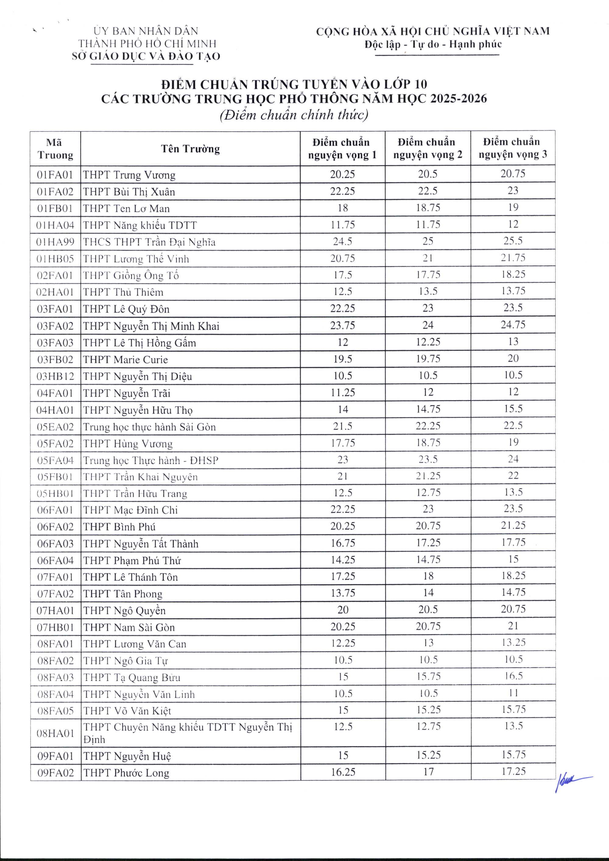 (PLVN) - Chiều tối ngày 26/6, Sở Giáo dục và Đào tạo TP HCM công bố điểm chuẩn tuyển sinh lớp 10 năm 2025 của các trường THPT công lập.