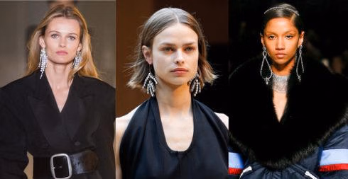 Những chiếc bông tai lấp lánh được đính từ nhiều hạt pha lê cao cấp xuất hiện với tần suất dày đặc trên sàn diễn của các nhà mốt lớn bao gồm: Philosophy di Lorenzo Serafini, Ellery, Oscar de al Renta, Saint Laurent, Isabel Marant, Céline, Miu Miu.