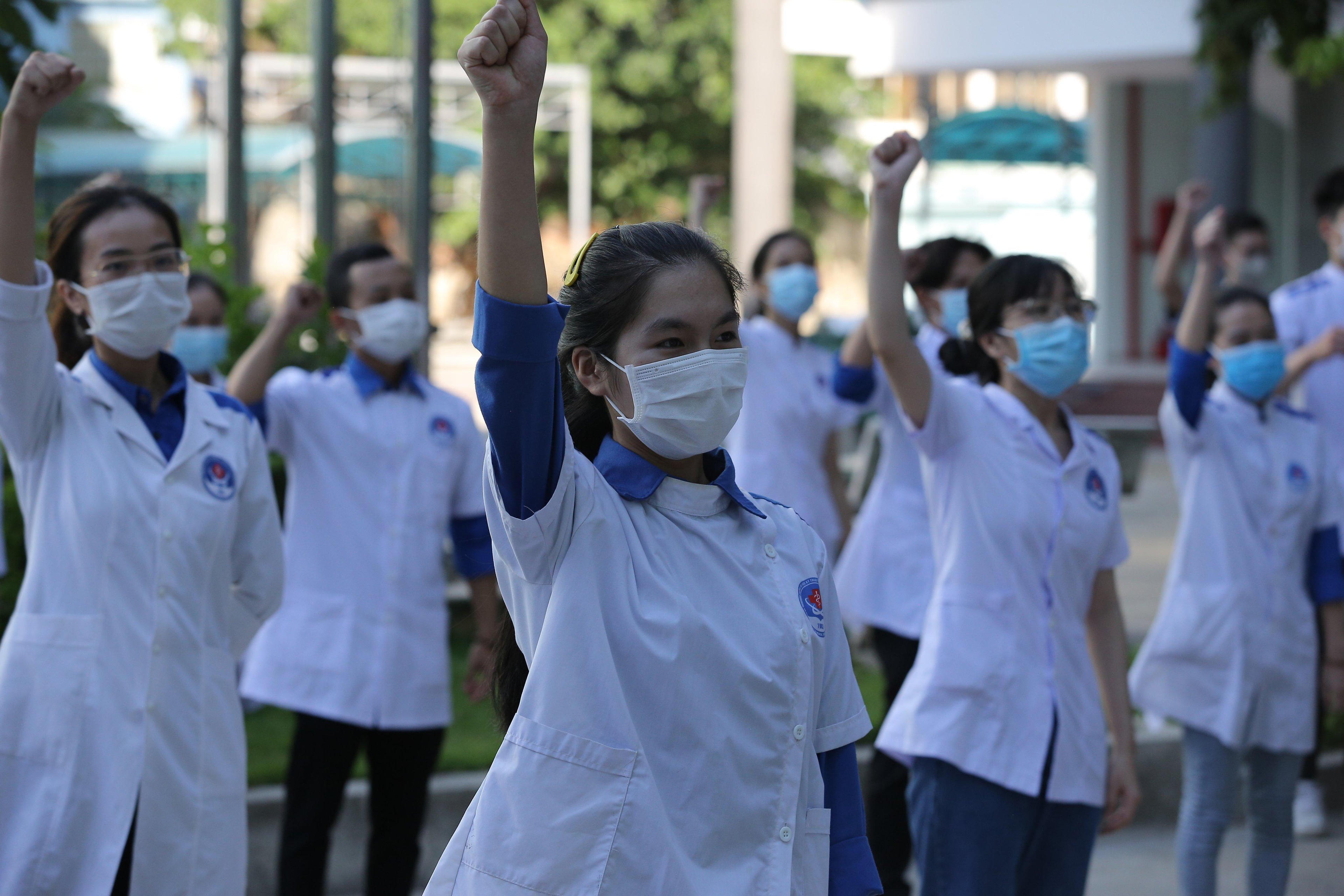Lễ xuất quân, tiễn hơn 100 cán bộ, sinh viên y các khoa của trường Đại học kỹ thuật Y - Dược Đà Nẵng vào Phú Yên để hỗ trợ phòng, chống dịch COVID-19. |