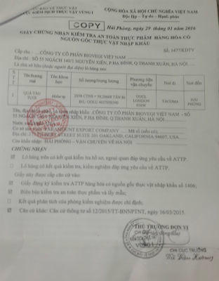 Ông Lê Sơn Hà, Trưởng phòng Kiểm dịch, Cục BVTV cho biết, trước khi cấp giấy phép nhập khẩu các loại hoa quả vào VN, các loại hoa quả này đều được phân tích nguy cơ dịch hại để biết các loại sâu bệnh của hoa quả đó có thể gây hại cho thực vật VN. Cục sẽ cử chuyên gia sang tận nước đó để kiểm tra quy trình bảo quản, đóng gói và quy trình xử lý sâu bệnh gây hại, sau đó mới cấp giấy phép số lượng nhập trong vòng 12 tháng và các cơ quan kiểm dịch tại cửa khẩu sẽ kiểm dịch từng lô hàng một để ngăn chặn các loại sâu bệnh gây hại ngay từ cửa khẩu.