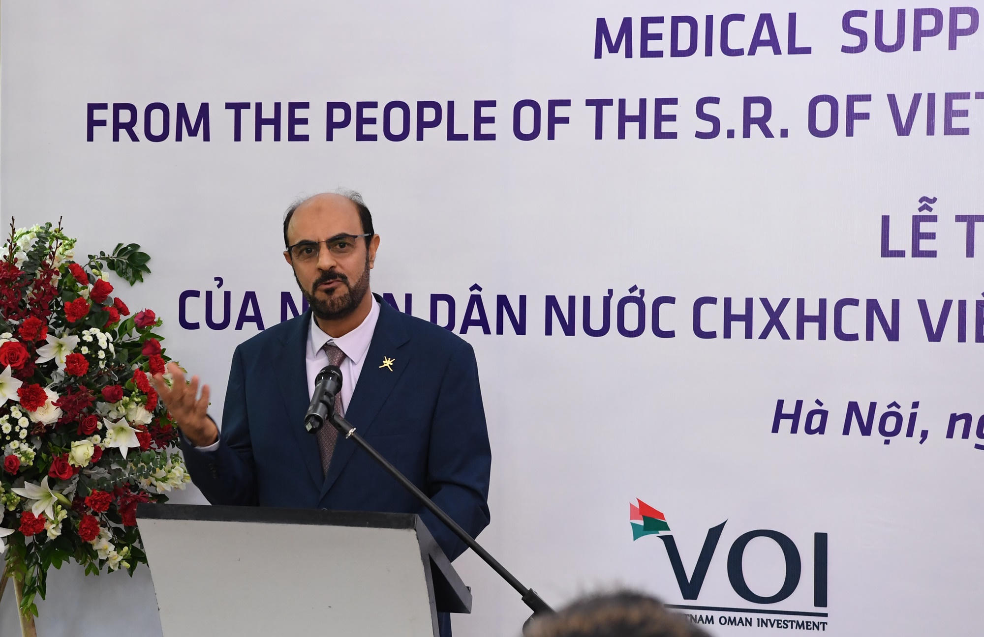 Phát biểu tại buổi lễ, Đại sứ Saleh Mohamed Ahmed Al Suqri, Trưởng cơ quan đại diện Vương quốc Ô-man tại Việt Nam gửi lời cảm ơn sâu sắc và bày tỏ lòng biết ơn về gói hỗ trợ vật tư y tế do Quỹ đầu tư Việt Nam Ô-man (VOI) và Tập đoàn dược Aikya trao tặng. Gói hỗ trợ đã thể hiện tình đoàn kết giữa nhân dân Việt Nam và nhân dân Ô-man.