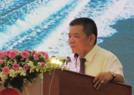 | Chủ tịch HĐQT BIDV Trần Bắc Hà phát biểu tại hội nghị. |