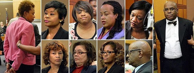 Đến tháng 4/2015, Tòa án hạt Fulton, bang Georgia, nước Mỹ đã ra phán quyết đối với 11 trong số 12 bị cáo liên quan vụ gian lận điểm thi bê bối nhất lịch sử nước này. Mức án cao nhất lên đến 20 năm tù. Một số người còn bị kết thêm tội đưa ra tuyên bố sai sự thật khiến án phạt của họ tăng thêm một vài năm tù. Kết thúc phiên tòa, các nhà giáo dục bị còng tay, dẫn khỏi phòng xử án và chấp hành án ngay lập tức.