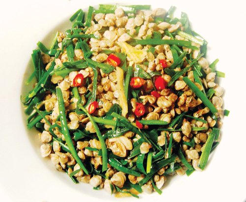 Hến xào lá hẹ tốt cho người mắc chứng dương nuy, ít tinh |