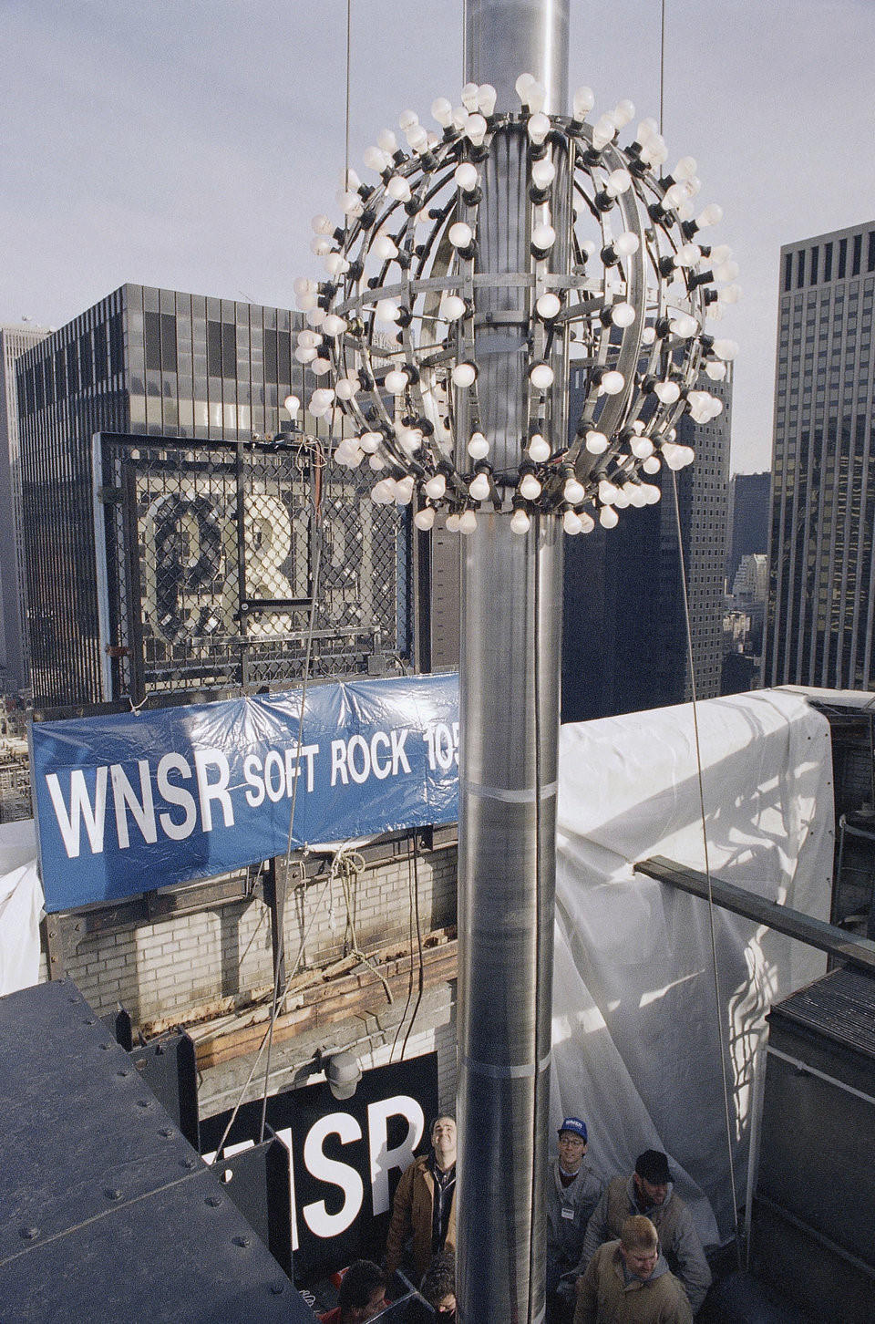 Quả cầu rơi hình táo tồn tại đến năm 1988. Sau chiến dịch I Love New York, từ năm 1989, biểu tượng này trở lại dạng nhôm cùng bóng đèn trắng ban đầu và có vài cải tiến nhỏ. Ảnh: AP.