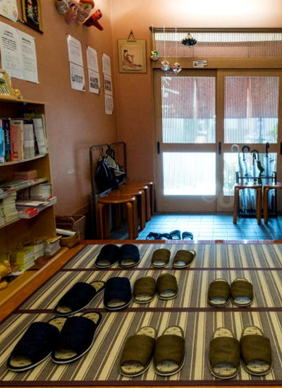 Giày cũng bị cấm trong các nhà hàng trải chiếu cói tatami. Trong các nhà hàng này, dép lê cũng không được phát vì dép có thể làm rách chiếu. Vậy nên hãy đi một đôi tất thật dày.