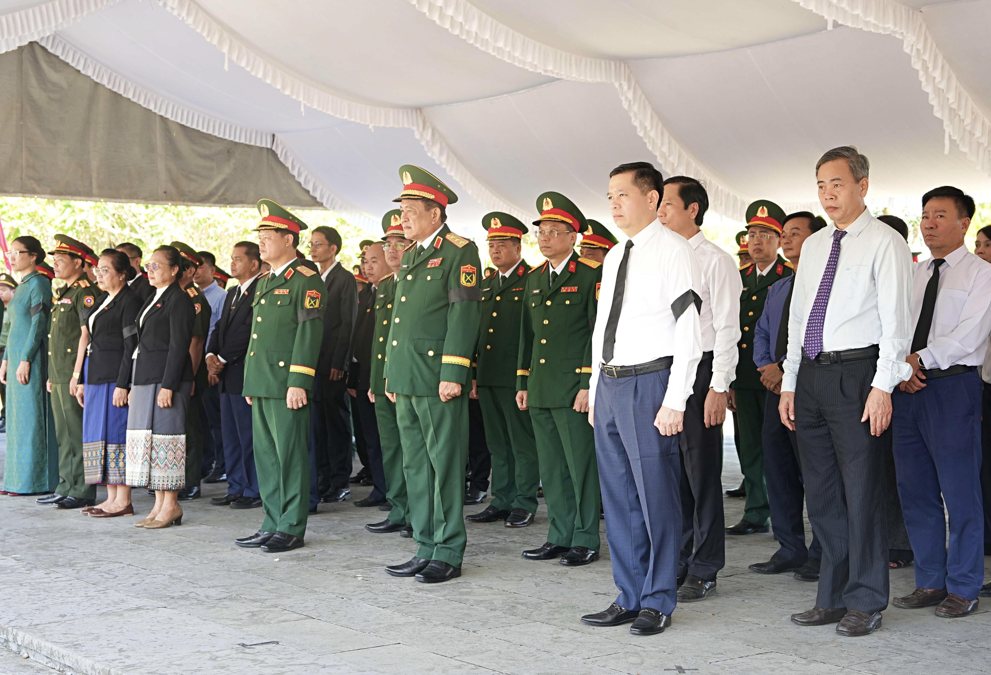 Thượng tướng Võ Minh Lương cùng lãnh đạo tỉnh Quảng Trị và tỉnh Savannakhet dự lễtruy điệu và an táng hài cốt liệt sĩ. |