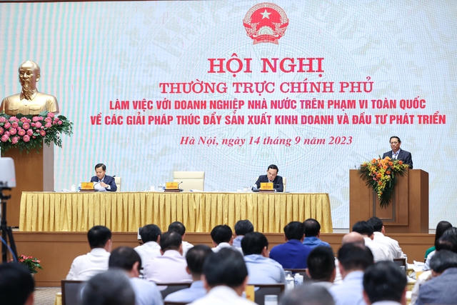 Sáng 14/9, tại Trụ sở Chính phủ, Thủ tướng Phạm Minh Chính chủ trì Hội nghị của Thường trực Chính phủ làm việc với doanh nghiệp Nhà nước (DNNN) trên phạm vi toàn quốc về các giải pháp thúc đẩy sản xuất kinh doanh và đầu tư phát triển.