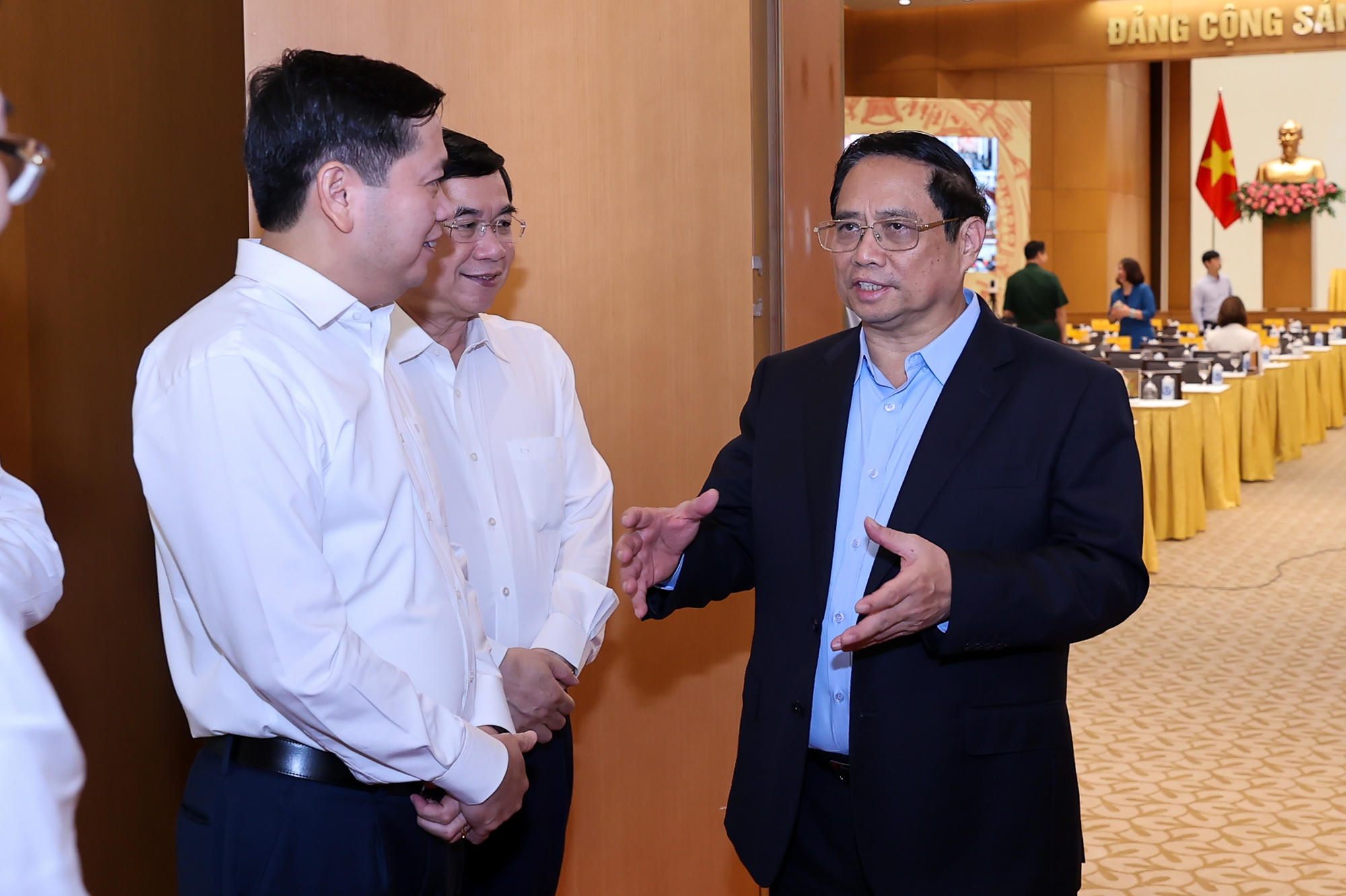 Thủ tướng trò chuyện với các đại biểu tham dự hội nghị - Ảnh: VGP/Nhật Bắc