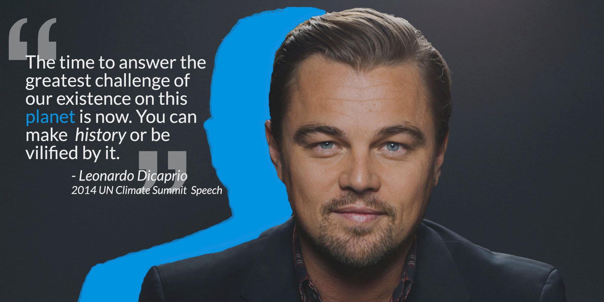 Leonardo DiCaprio được biết đến là nhà hoạt động môi trường tích cực, được một số tổ chức ghi nhận và trao giải thưởng. Anh cũng làm phim về biến đổi khí hậu. Thậm chí anh từng gây hấn với một số nhà cầm quyền vì những phát ngôn, hành động tích cực để bảo vệ động vật hoang dã và môi trường.