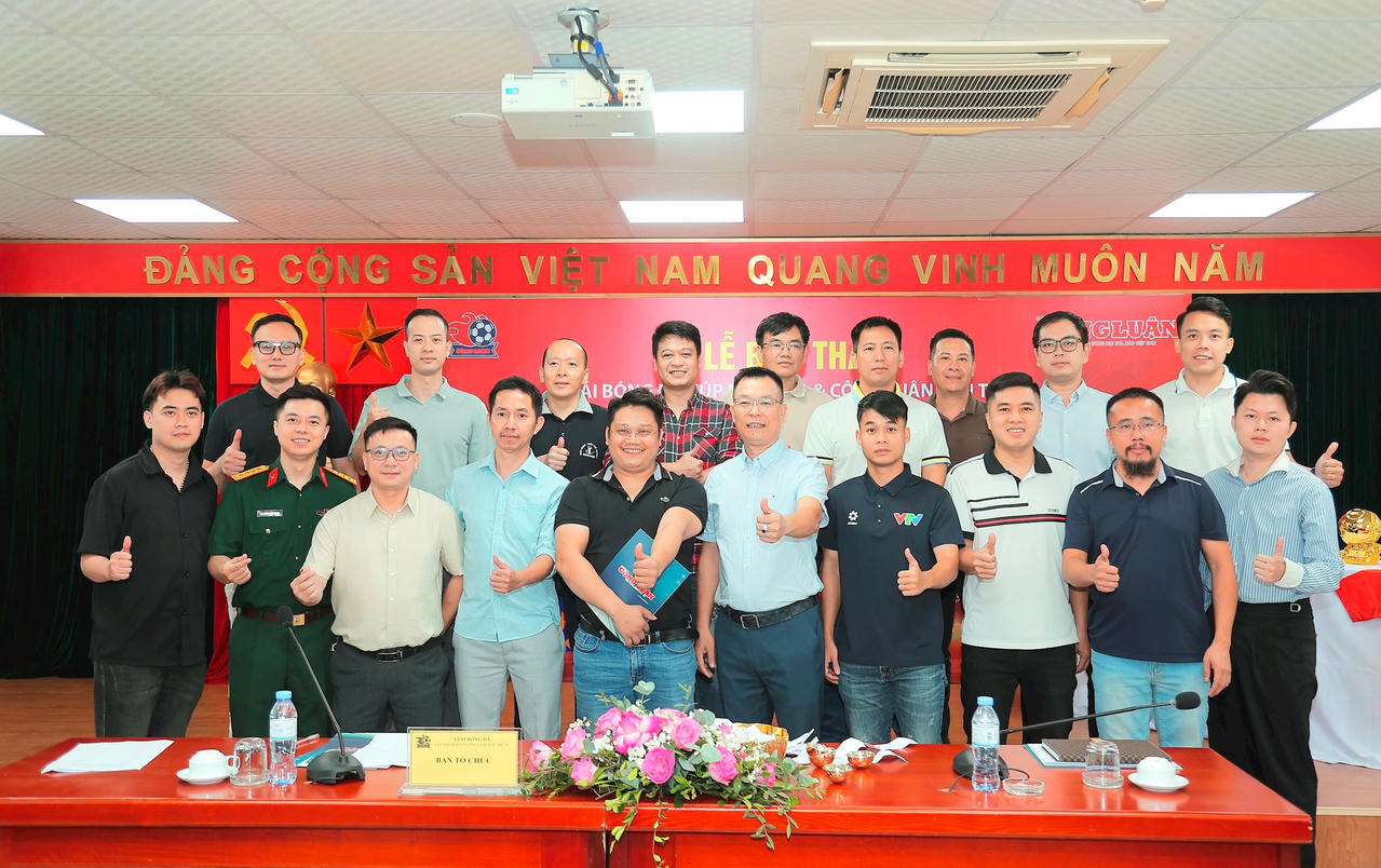 Đại diện các đội bóng chụp hình lưu niệm sau Lễ bốc thăm chia bảng Giải bóng đá Cúp Báo Nhà báo và Công luận lần thứ IV năm 2025. |