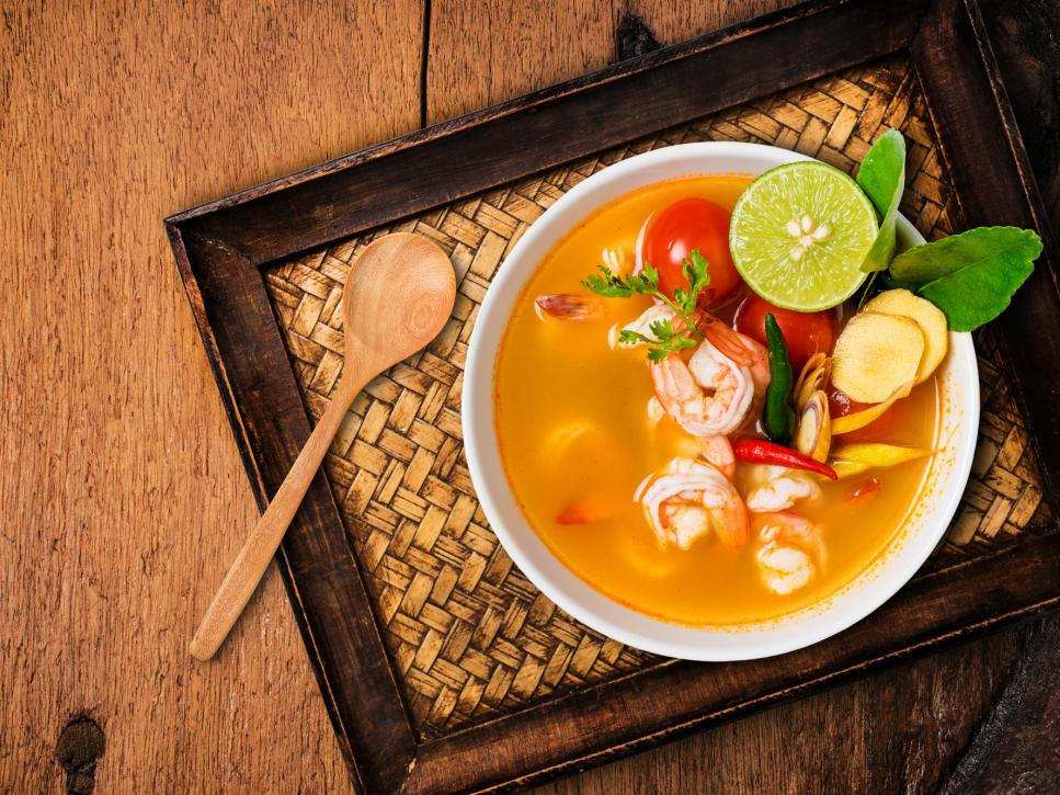 Canh chua: Nguyên liệu tạo vị chua thường là chanh, quất, khế xanh, hoặc xoài xanh. Nước canh khá trong, có thể tăng hương vị bằng húng quế, lá chanh Thái, riềng và củ sả. Ảnh: Artpritsadee/Getty Images.