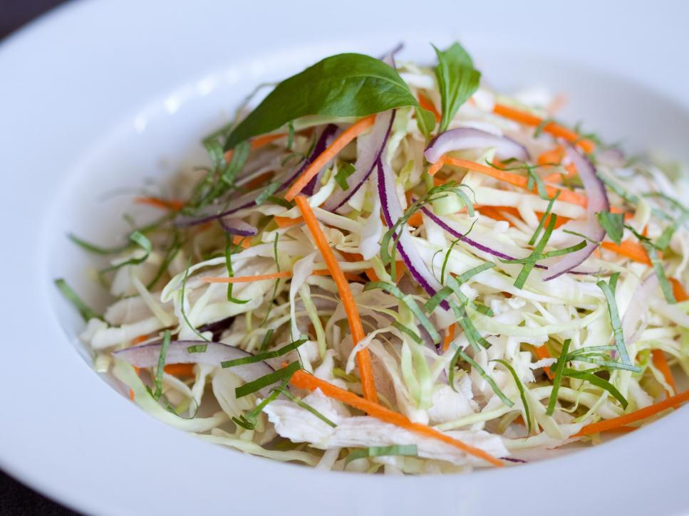 Salad bắp cải: Thường được gọi là “bắp cải kiểu Á”, salad có thành phần chính là bắp cải thái mỏng, trộn với nước mắm, đường, nước cốt chanh tươi, và trang trí bằng đậu phộng nghiền và rau mùi, lá bạc hà hoặc húng quế. Nếu gà rán, thịt lợn rán, hoặc tôm hấp còn thừa, bạn có thể thái miếng mỏng và trộn chung để đĩa salad phong phú hơn. Ảnh: KitchenM/Getty Images.