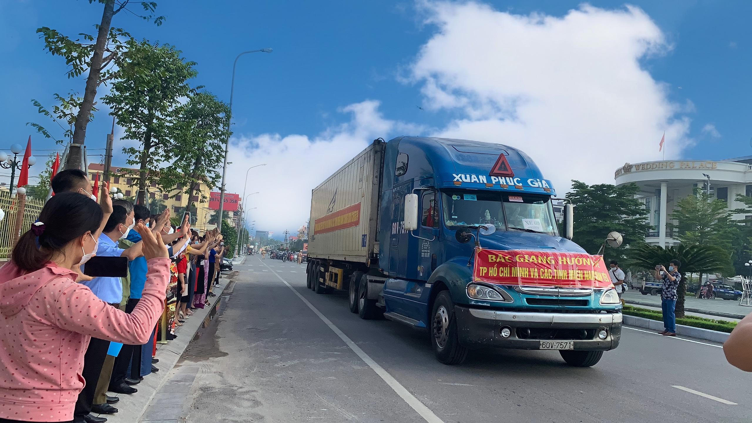 Hôm nay, ngày 27/7 đoàn xe vận tải chở theo 170 tấn hàng hóa gồm lương thực, thực phẩm, vật tư y tế chống dịch ... sẽ lên đường, chạy thẳng một mạch, không nghỉ vào Nam. Đó là kết quả chỉ sau một tuần phát động nhân dân toàn tỉnh đóng góp, cứu trợ các tỉnh phía Nam. Đó không chỉ là một lời cảm ơn với những hỗ trợ to lớn mà nhân dân cả nước với Bắc Giang, mà đó là một cử chỉ thể hiện tinh thần trách nhiệm, một nghĩa vụ phải đóng góp cho đất nước của mỗi một con người Việt Nam trong lúc đất nước khó khăn.
