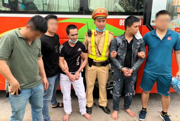 Sau hơn 10 giờ truy bắt, đến 12h20 trưa 20/3, tại huyện Can Lộc, phòng Cảnh sát hình sự Công an Hà Tĩnh phối hợp với Phòng CSGT và Công an huyện Can Lộc phát hiện, bắt giữ 2 đối tượng nguy hiểm này khi đang ngồi trên xe ô tô khách BKS: 18B - 00668, chạy hướng Nam - Bắc.