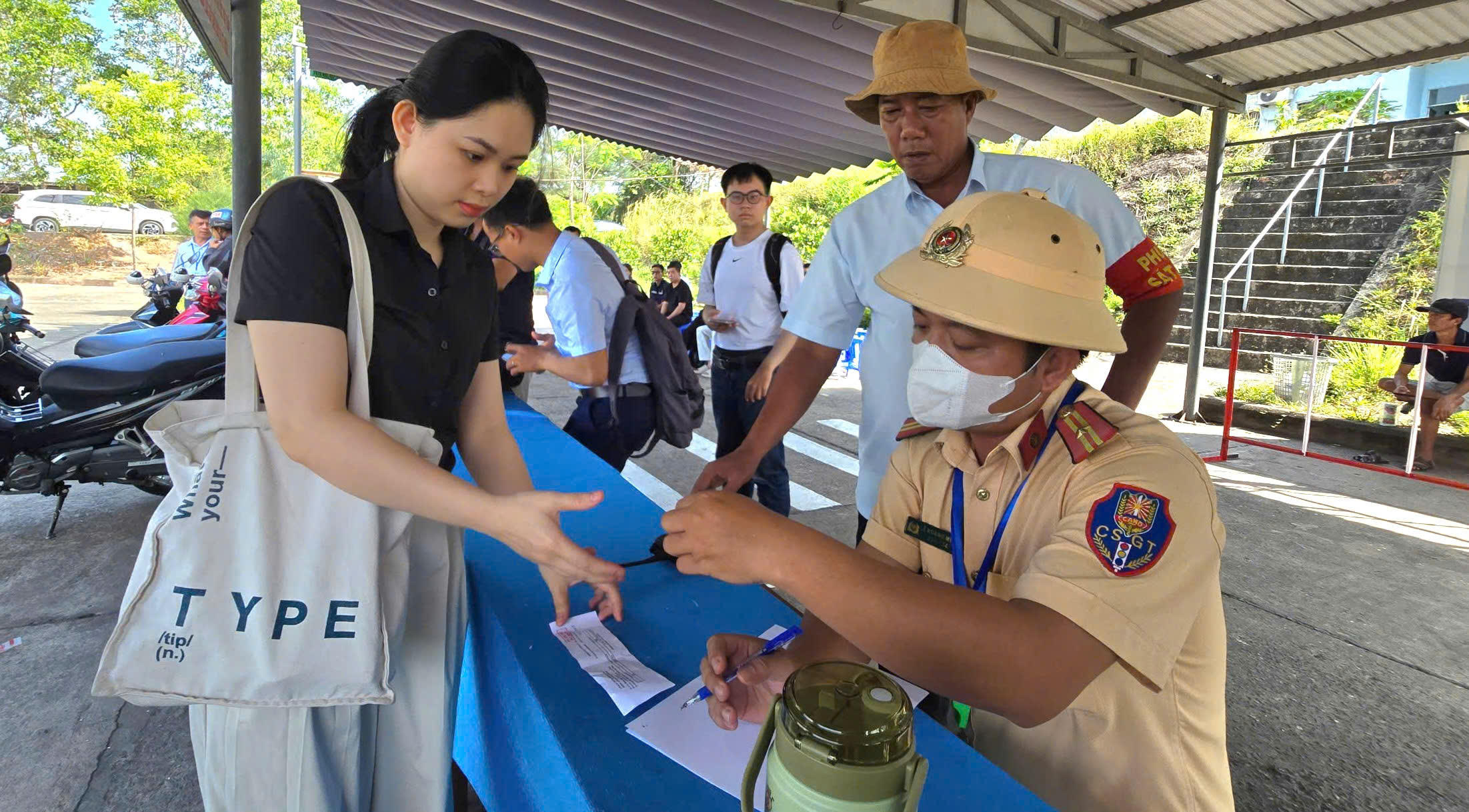 Kỳ sát hạch có tổng cộng 212 thí sinh, gồm 137 học viên mô tô thuộc Trung tâm Giáo dục nghề nghiệp đào tạo lái ô tô - mô tô Đà Nẵng và 75 người sát hạch do giấy phép lái xe đã quá thời hạn. Trước khi thi, thí sinh được cán bộ Phòng CSGT hướng dẫn kỹ phần thi lý thuyết và thực hành.