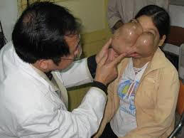 Bác sĩ Nguyễn Quốc Bảo, Trưởng Khoa Ngoại đầu cổ, Bệnh viện K Trung ương, cho biết bệnh nhân Lý Mùi Xiên (SN 1968 ở huyện Nguyên Bình, tỉnh Cao Bằng) nhập viện với 2 khối u khổng lồ trên mặt khiến khuôn mặt bị biến dạng, 2 mắt trợn ngược bị đẩy lên trán khiến 2 mắt không nhìn rõ đường đi.