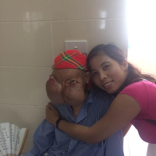 Đeo” trên mặt 2 khối u khổng lồ khiến gương mặt bị biến dạng, bệnh nhân Lý Mùi Xiên (SN 1968, ở Cao Bằng) đang được các bác sĩ BV K Trung ương chăm sóc trước ca đại phẫu thuật.