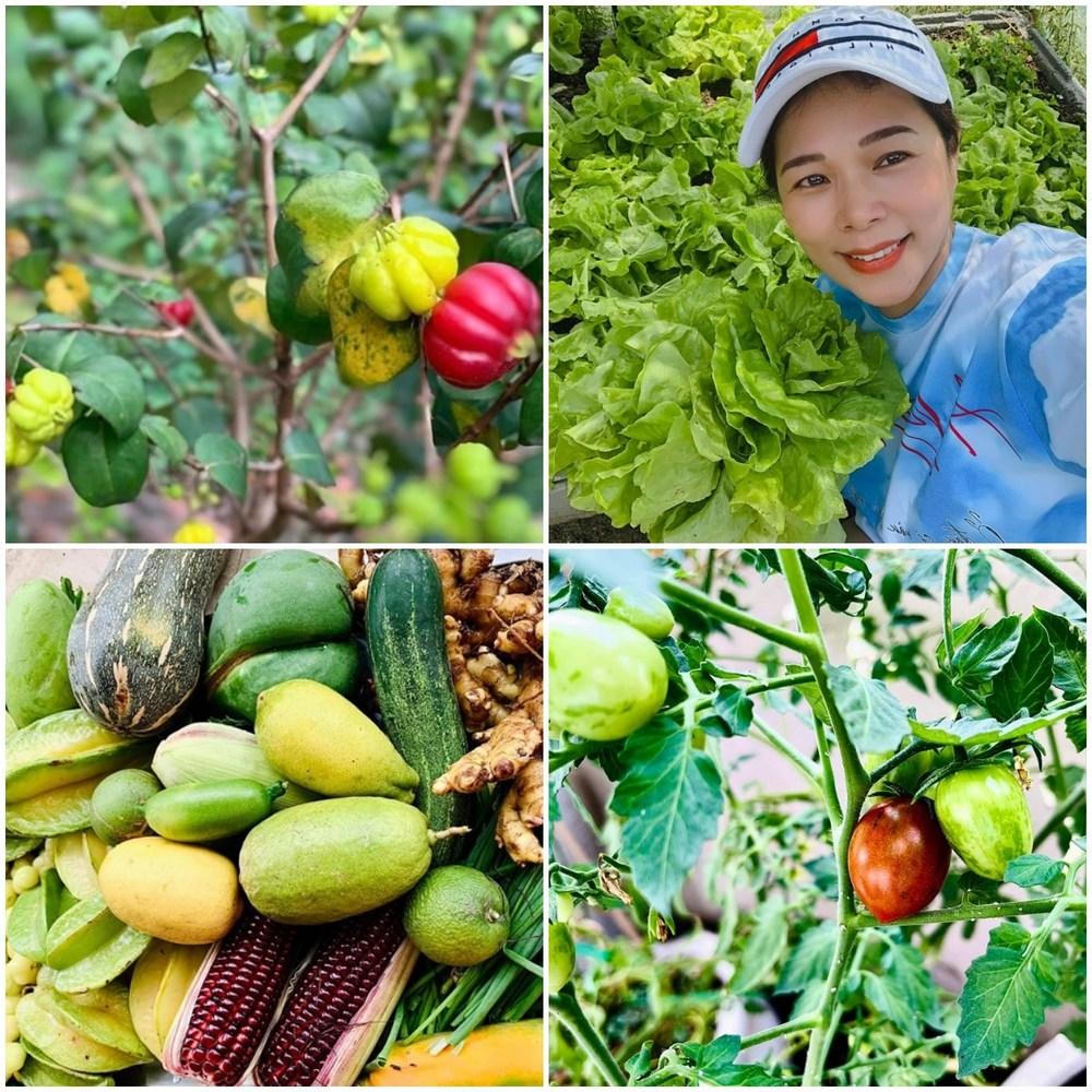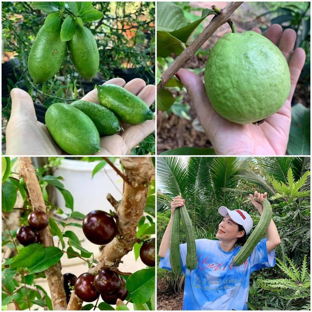 Khu vườn đa dạng loại trái cây, nông sản. Nữ ca sĩ mong muốn có thêm nhiều loại cây độc lạ hơn nữa. (Ảnh: FBNV)