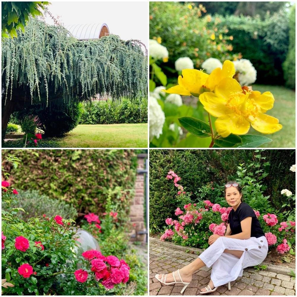 Tạo biệt thự thành nơi nghỉ dưỡng, khu vườn của Mỹ Lệ tại Đức có nhiều loại hoa và cây cối lâu năm, có giá trị cao. (Ảnh: FBNV)