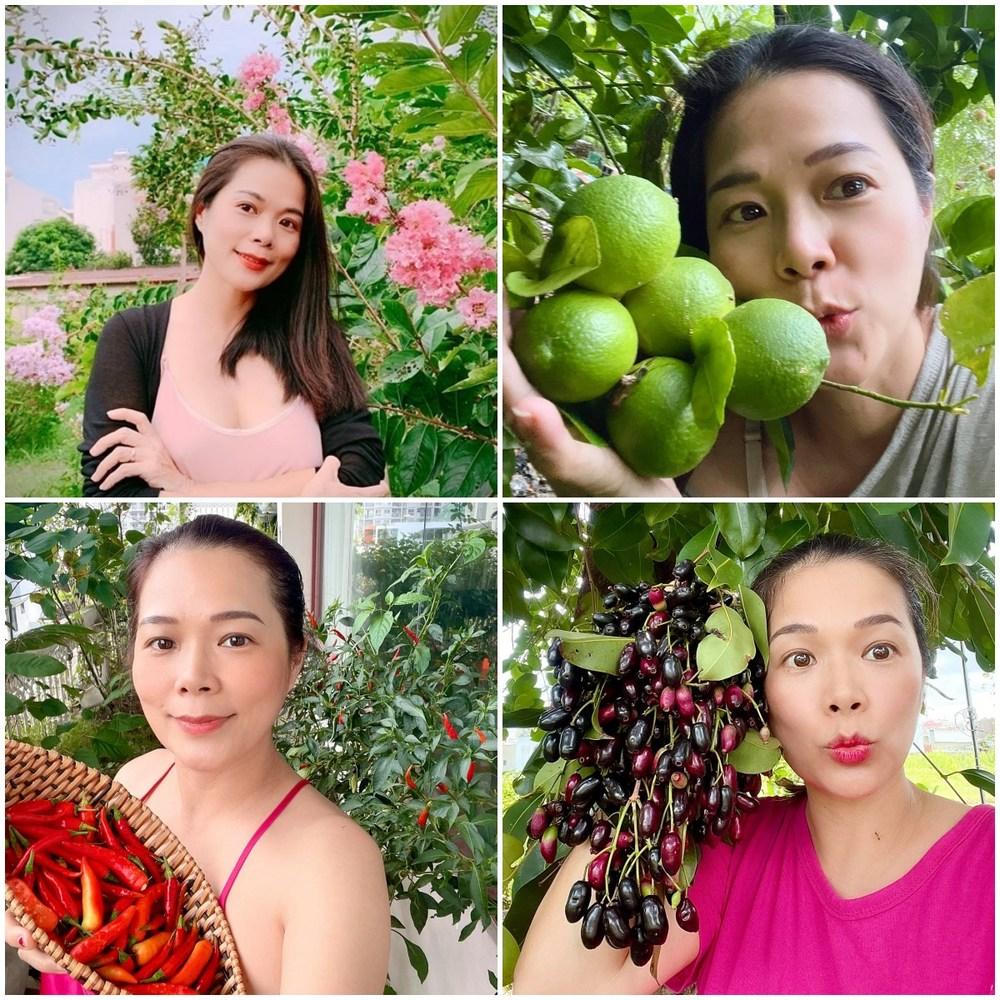Nữ ca sĩ dành nhiều thời gian chăm sóc cây cối và thu hoạch nông sản. (Ảnh: FBNV)