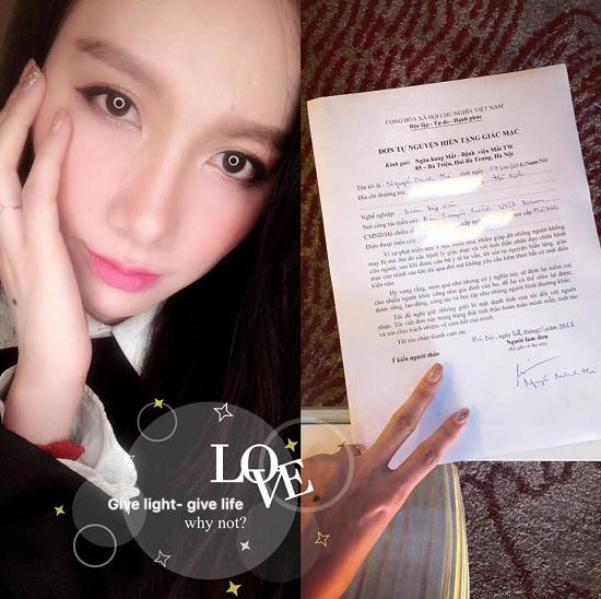 | MC Hạnh Phúc cũng ký vào đơn hiến tặng giác mạc sau khi qua đời và chia sẻ trên sóng truyền hình. |