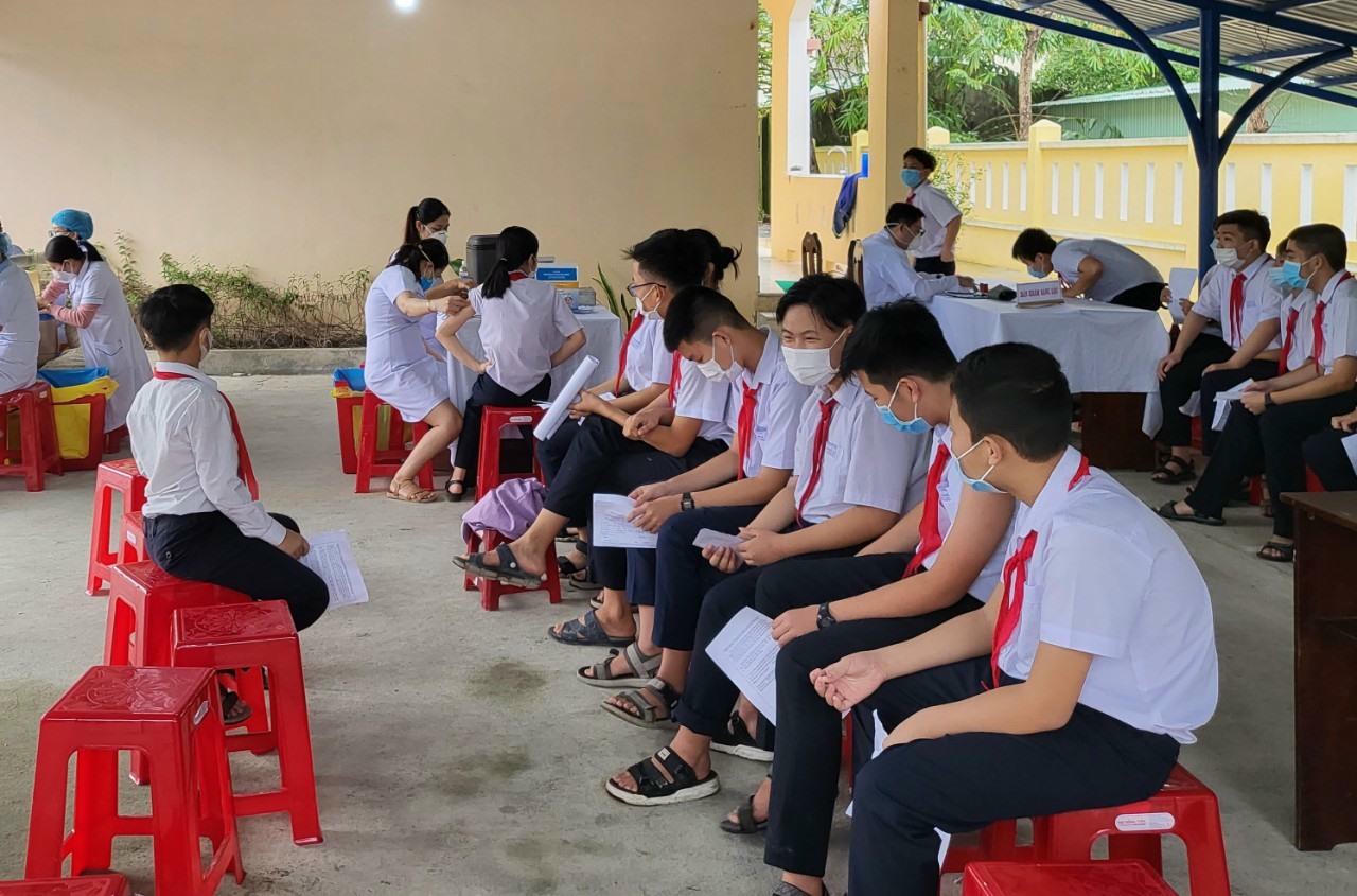 Thời điểm này, Núi Thành tổ chức tiêm cho hơn 13.000 học sinh trên địa bàn và sắp hoàn thành số lượng vaccine được phân bổ.