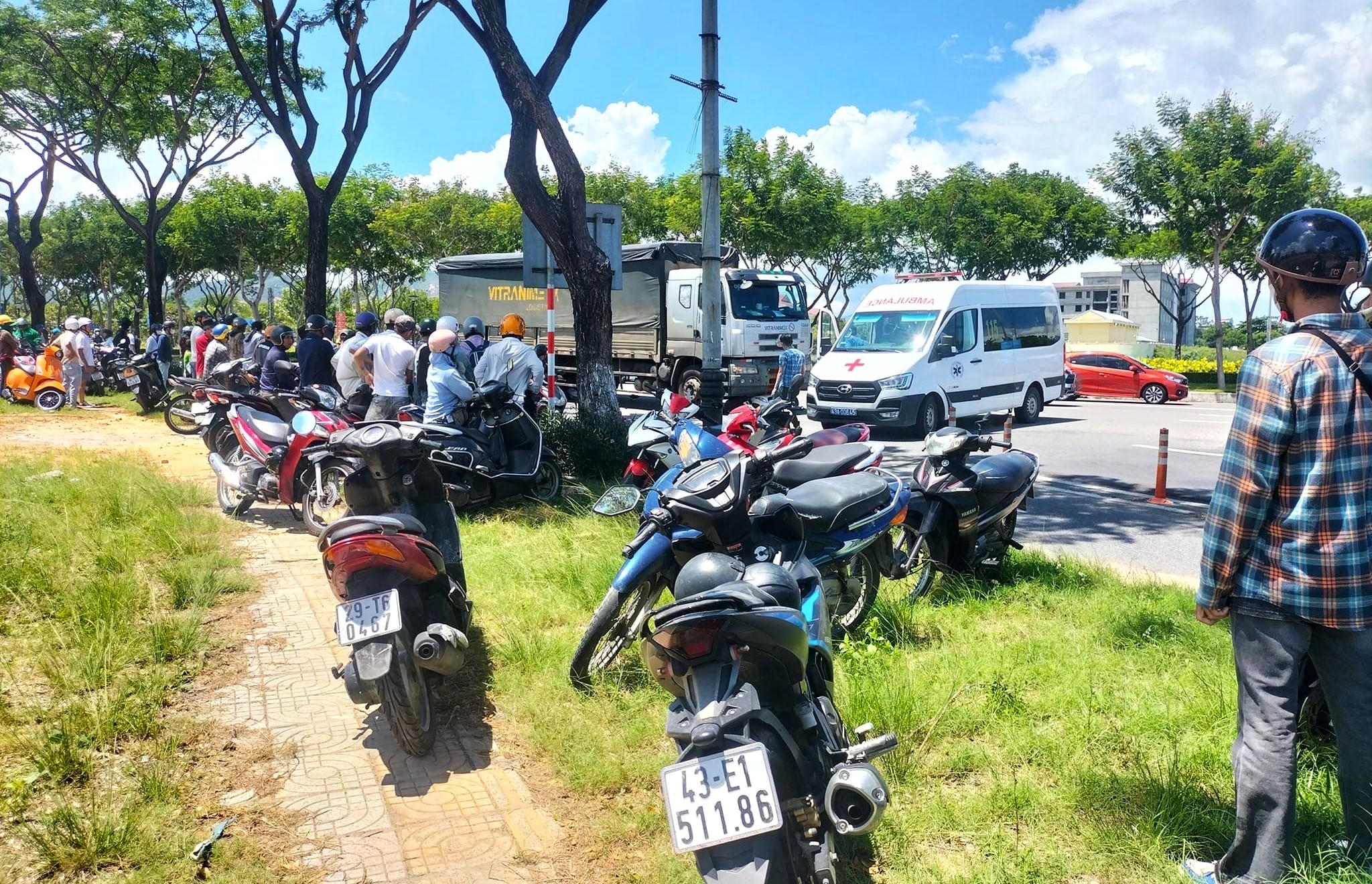Khi đến giao lộ với đường Hoàng Thị Loan thì ô tô tải xảy ra va chạm với xe máy BKS 43C2-12xxx của 2 nữ sinh Trần Vi Thảo N (SN 2001, trú thị trấn Hương Canh, huyện Bình Xuyên, tỉnh Vĩnh Phúc) và Lê Nhã T (SN 2002, trú thị trấn Ái Nghĩa, huyện Đại Lộc, tỉnh Quảng Nam).