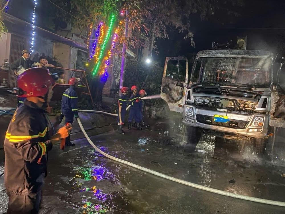 Trước đó, khoảng 21h30 ngày 12/12, ô tô tải 74E-006.XX bốc cháy khi đang di chuyển trên đường Lê Hồng Phong (thị trấn Lao Bảo, huyện Hướng Hóa), đoạn đến ngã ba giao nhau với đường Hoàng Diệu.