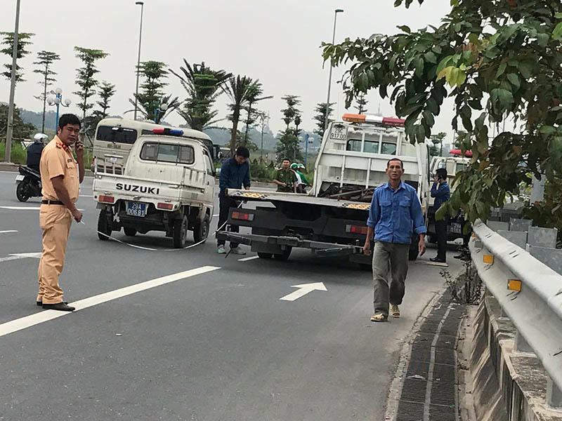 Vụ tai nạn xảy ra vào khoảng 5h30 hôm nay, 24/10, trên làn đường gom QL 5 (xã Vĩnh Ngọc, Đông Anh, Hà Nội) khi chiếc xe cứu hộ BKS 29C-917.XX đi từ cầu Nhật Tân xuống đường Võ Nguyên Giáp.