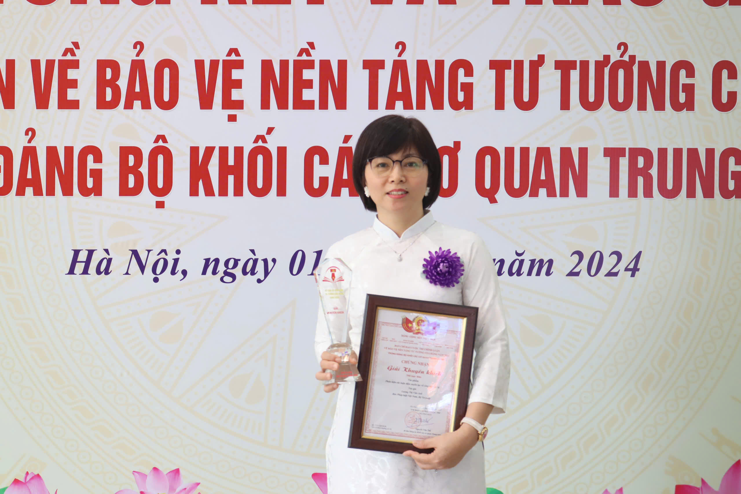 (PLVN) - Sáng nay, 1/10, tại Lễ tổng kết và trao giải Cuộc thi Chính luận về bảo vệ nền tảng tư tưởng của Đảng năm 2024 trong Đảng bộ Khối các cơ quan Trung ương, 2 tác phẩm của 2 tác giả thuộc Bộ Tư pháp được trao giải Khuyến khích. Trong đó, có tác phẩm “Phản biện các luận điệu xuyên tạc về công tác cán bộ” của tác giả Lương Thị Vân Anh, Báo Pháp luật Việt Nam.