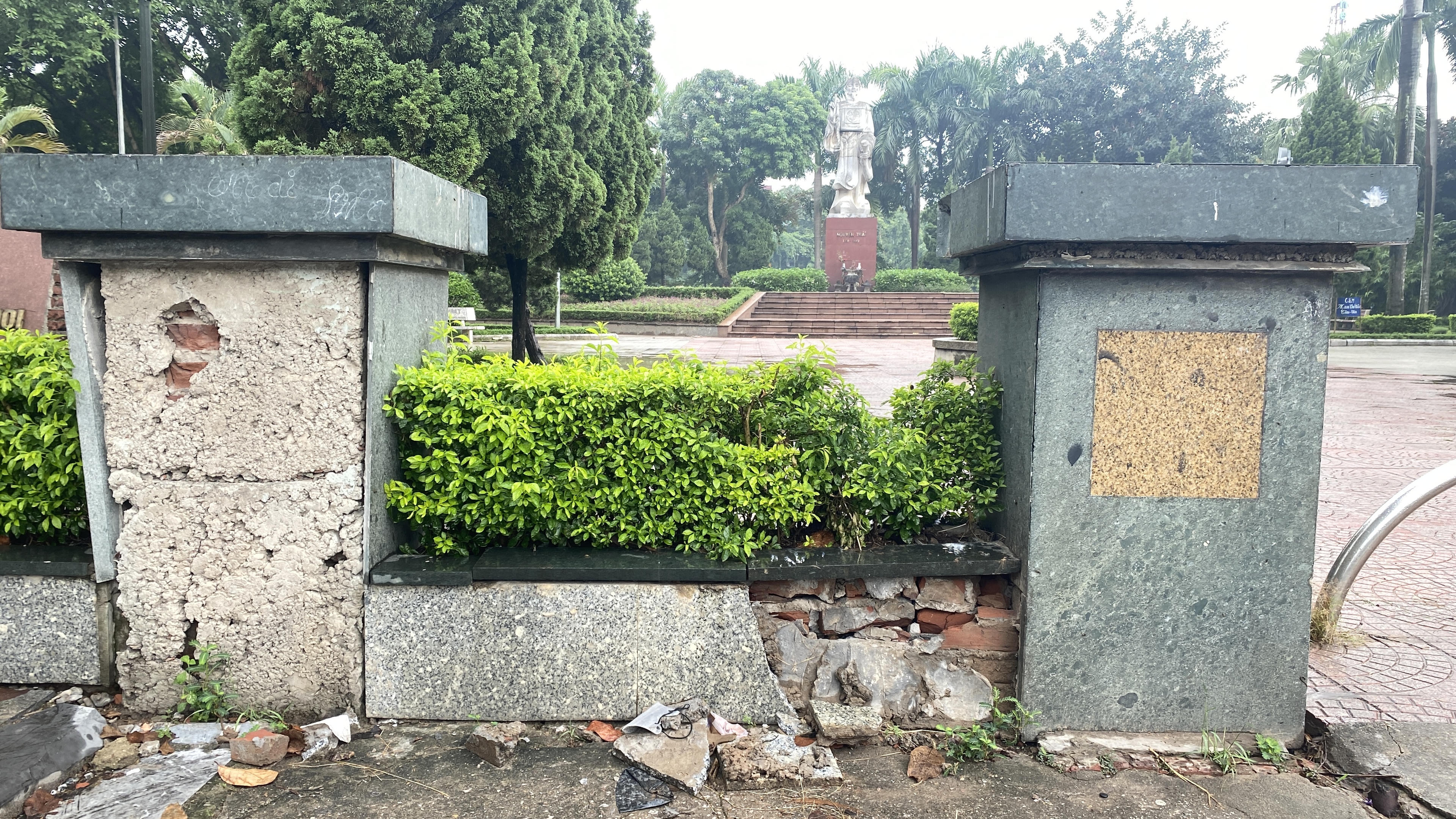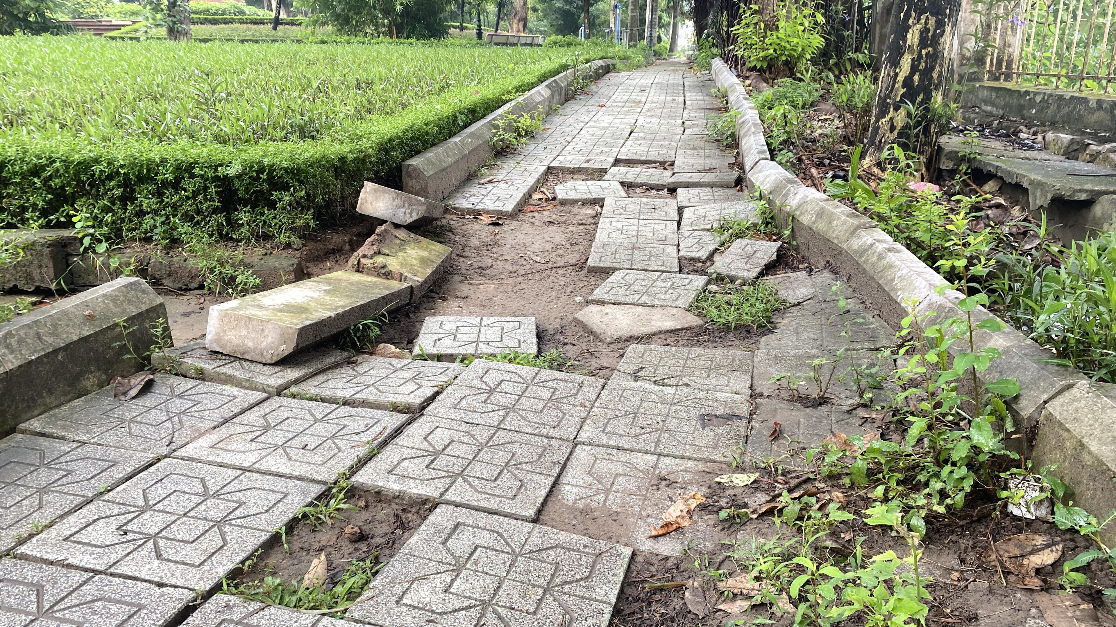 Tình trạng xuống cấp cũng diễn ra tại vườn hoa Hà Đông. |