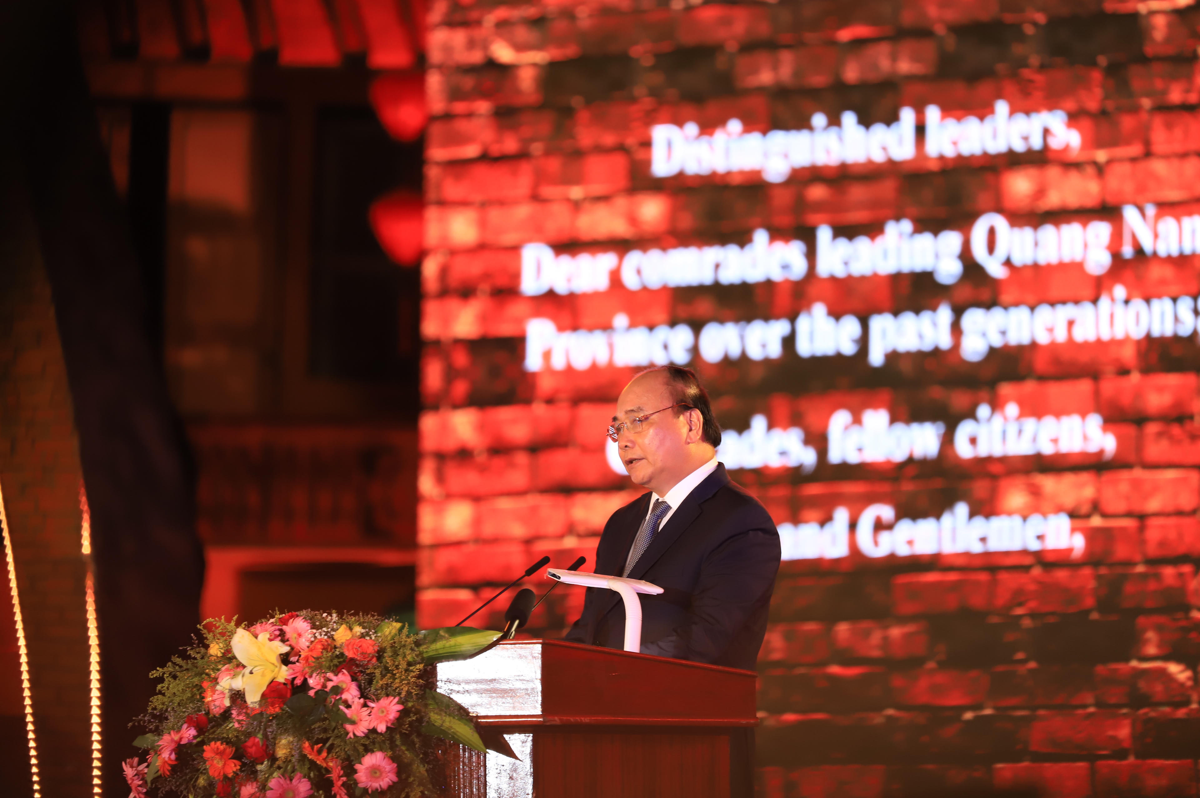 Thủ tướng điểm lại, ngày 4/12/1999, cách đây tròn 20 năm, một sự kiện văn hóa độc đáo, cùng một lúc,trên địa bàn một tỉnh có đến hai di sản được UNESCO vinh danh di sản văn hóa thế giới gồm: Đô thị cổ Hội An và Khu Đền tháp Mỹ Sơn. 10 năm sau, Cù Lao Chàm - Hội An được chính thức công nhận Khu Dự trữ sinh quyển thế giới vào ngày 26/5/2009.