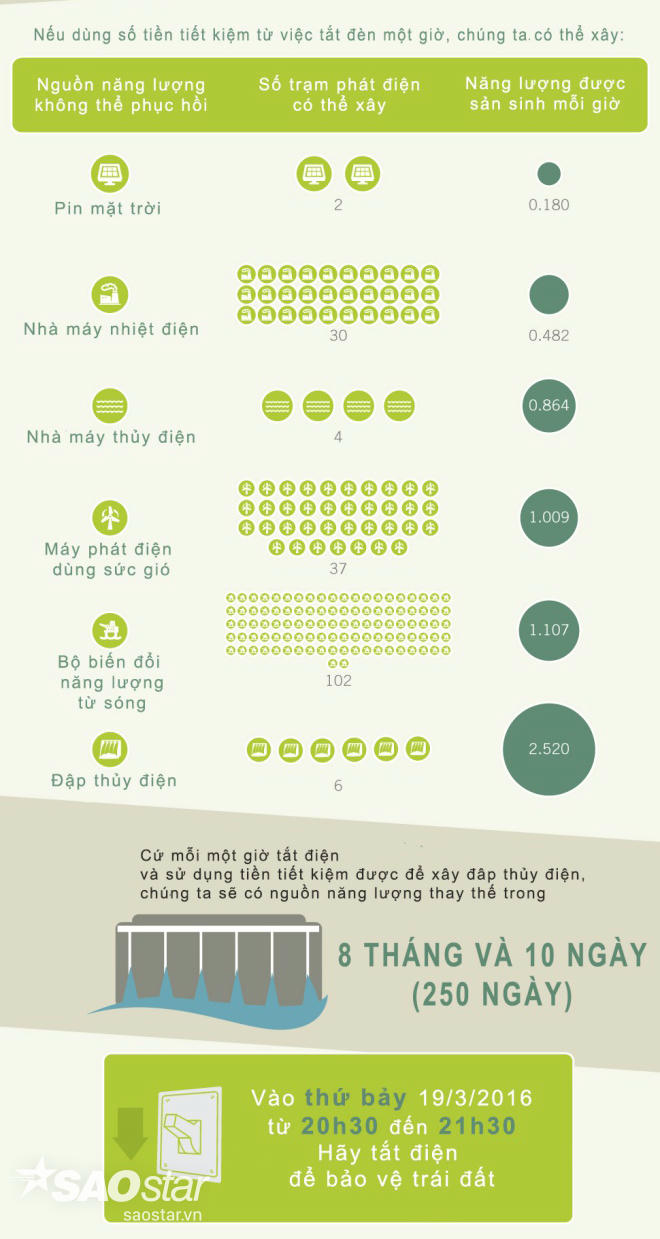 Một giờ tắt điện, chúng ta có thể tiết kiệm những con số khổng lồ.