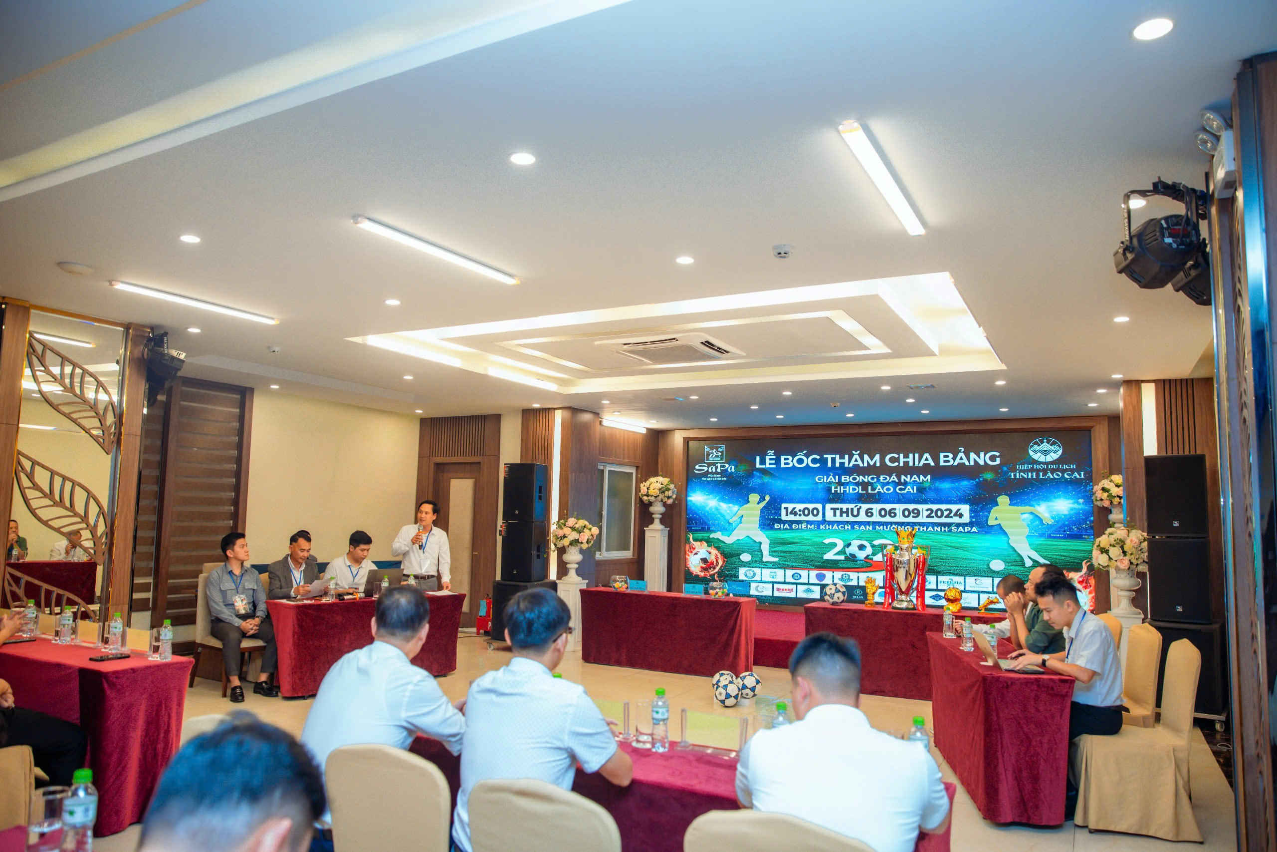Đại biểu tham dự lễ bốc thăm giải bóng đá nam Hiệp hội Du lịch Lào Cai năm 2024. |