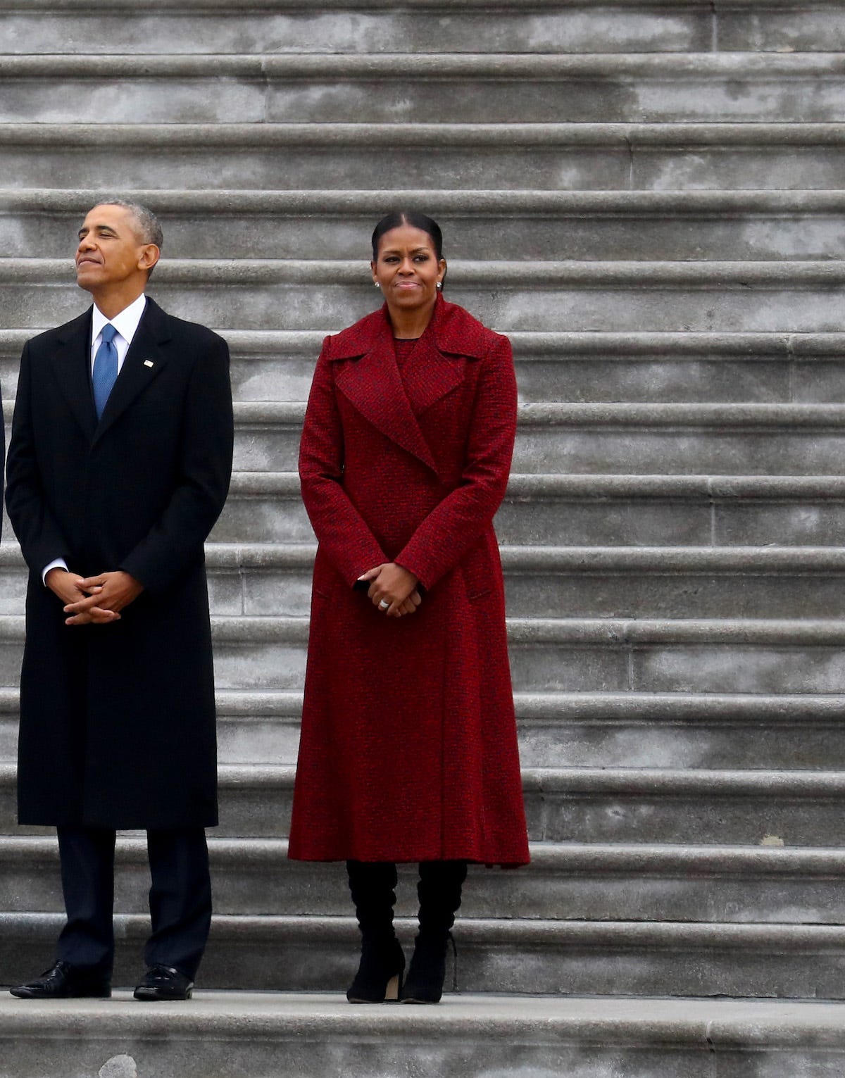 Trong cuộc diễu hành Ngày nhậm chức lần thứ hai vào năm 2013, bà Obama mặc một chiếc áo khoác dài đến đầu gối có thắt lưng.