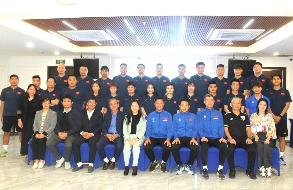 Bà Nguyễn Thanh Hà – Phó Tổng Thư ký LĐBĐVN, Trưởng Ban Tổ chức tới dự và chụp ảnh với các thành viên khóa huấn luyện. |