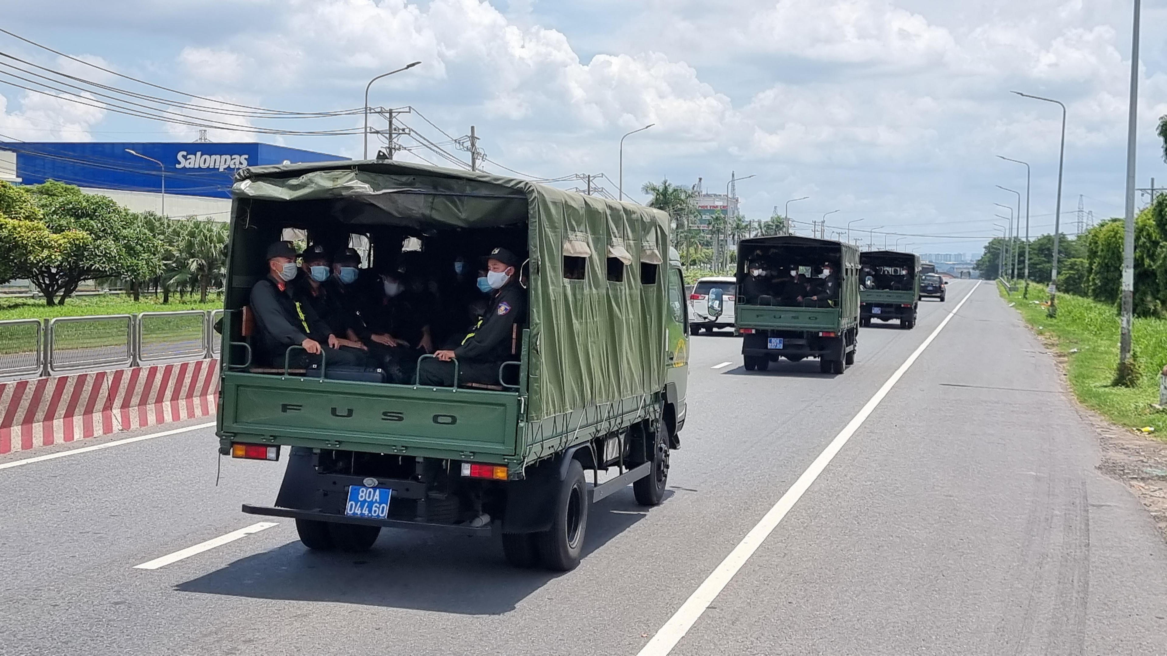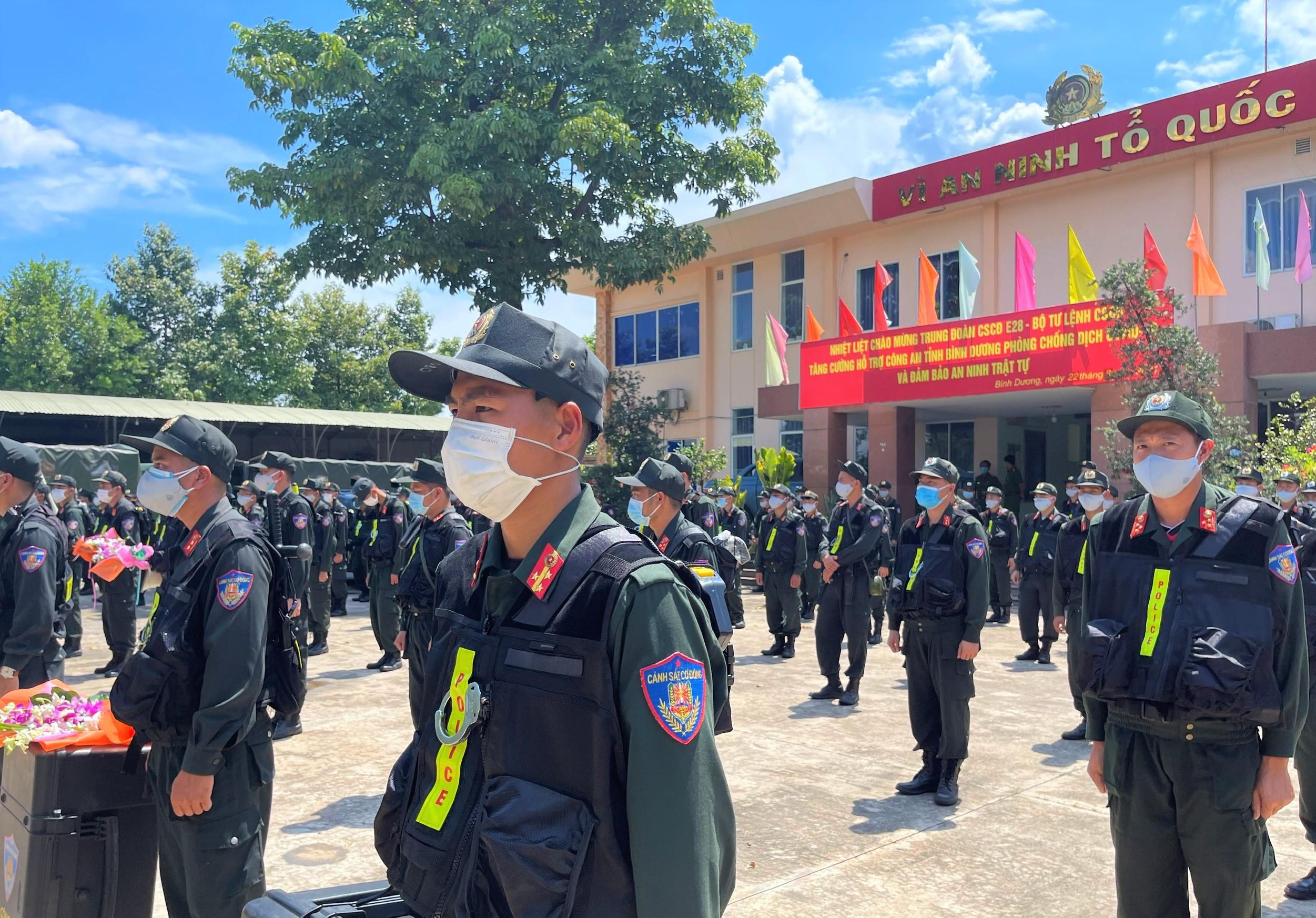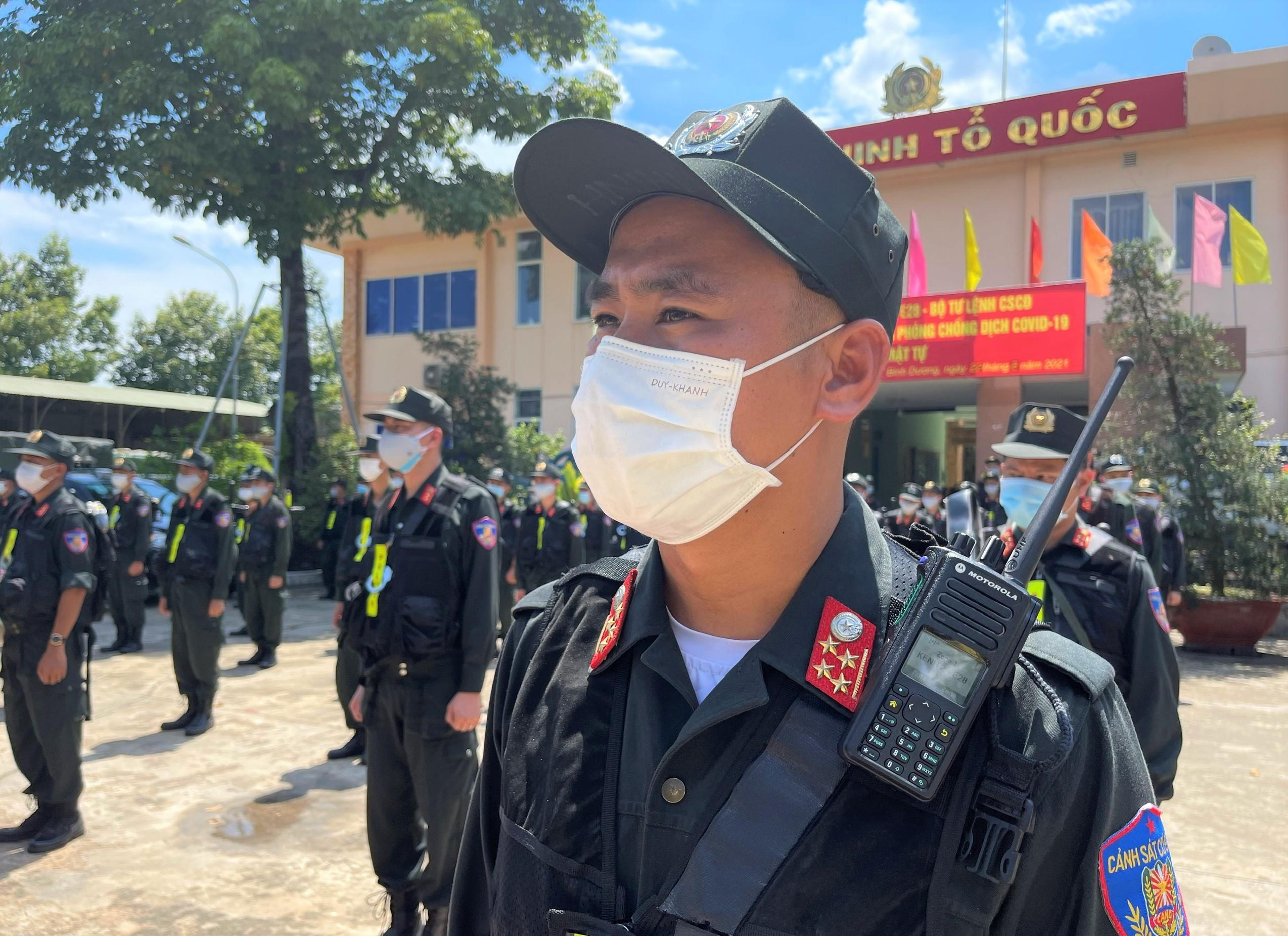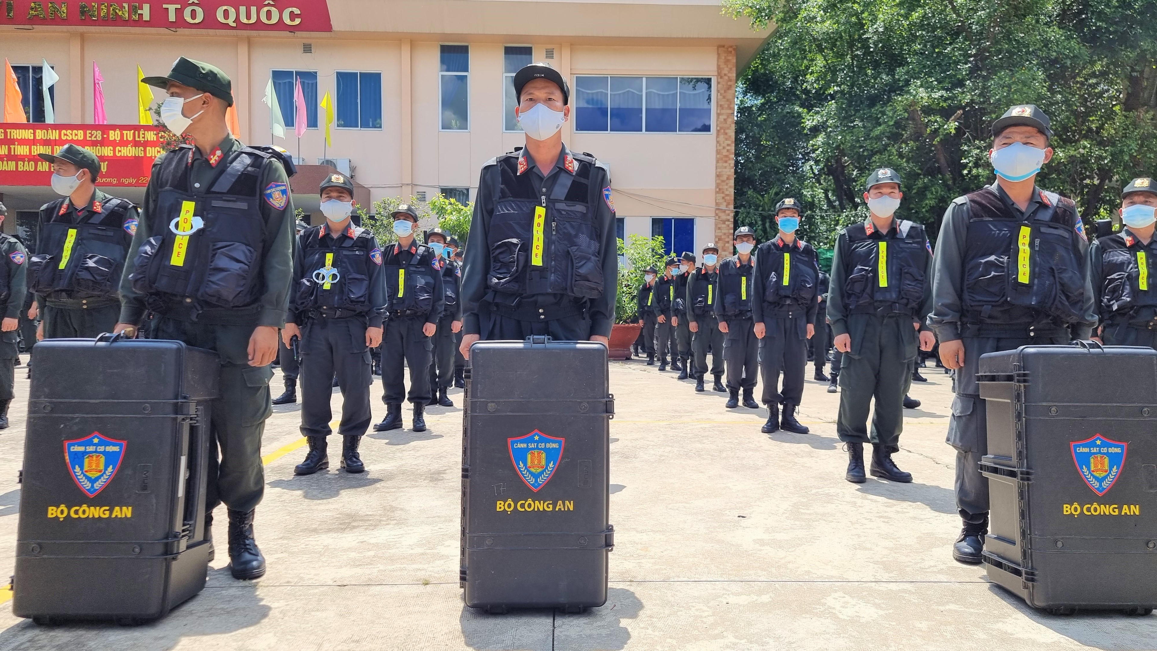 Trung đoàn CSCĐ Trung Bộ chi viện cho Công an tỉnh Bình Dương thực hiện nhiệm vụ đảm bảo an ninh, trật tự và phòng chống dịch COVID-19. |
