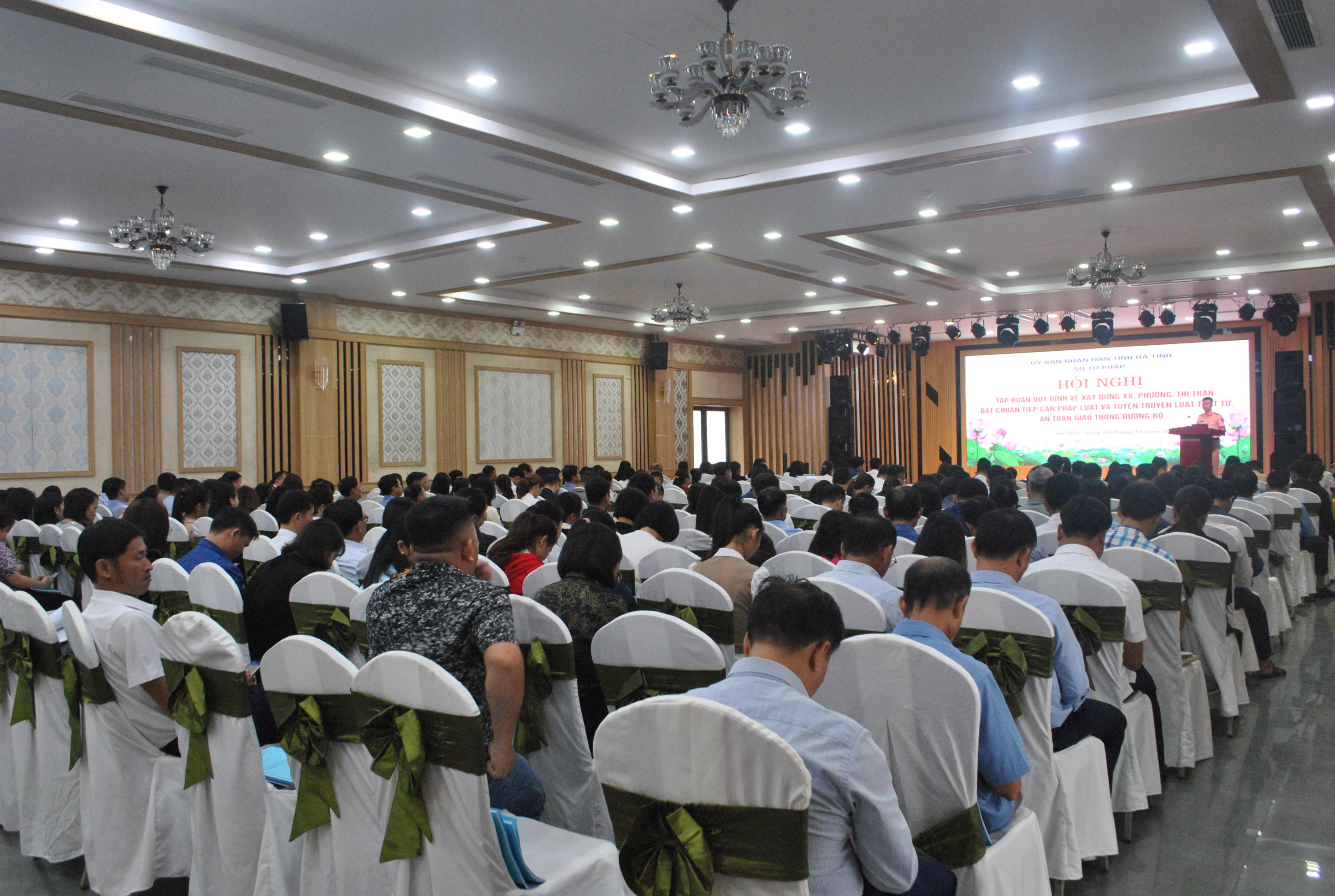250 công chức tư pháp hộ tịch tại Hà Tĩnh được nghe kiến thức cơ bản, cần thiết liên quan đến việc xây dựng xã, phường, thị trấn đạt chuẩn tiếp cận pháp luật và ATGT. Ảnh: PV |