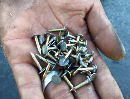 Chỉ trong vòng 2 ngày (24-25/7), người dân ở đây đã gom được khoảng 10kg đinh vít trên dọc tuyến đường, theo nhiều người nhận định loại đinh này thường dùng trong việc đóng trần nhà thạch cao.