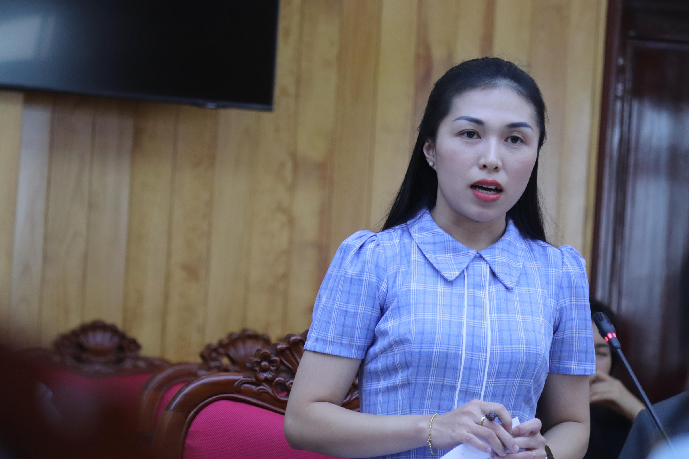 Bà Trần Diệp Mỹ Dung- Phó Bí thư Tỉnh đoàn Lâm Đồng thông tin về cuộc thi Dalat Best Dance Crew 2024. |
