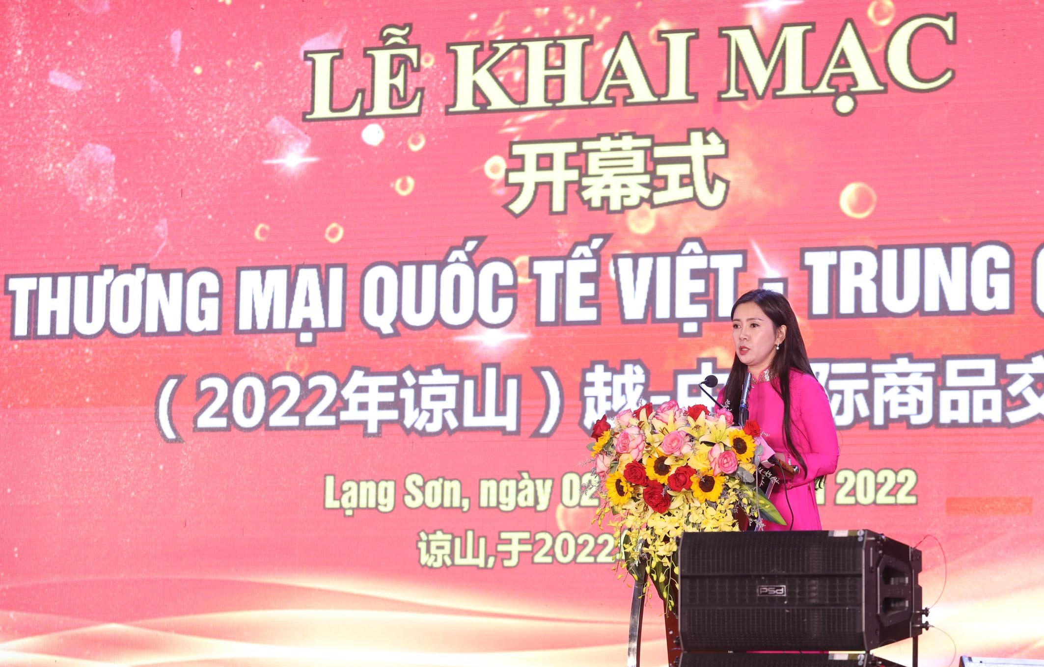 Bà Đoàn Thu Hà - Phó chủ tịch UBND tỉnh Lạng Sơn phát biểu khai mạc Hội chợ |